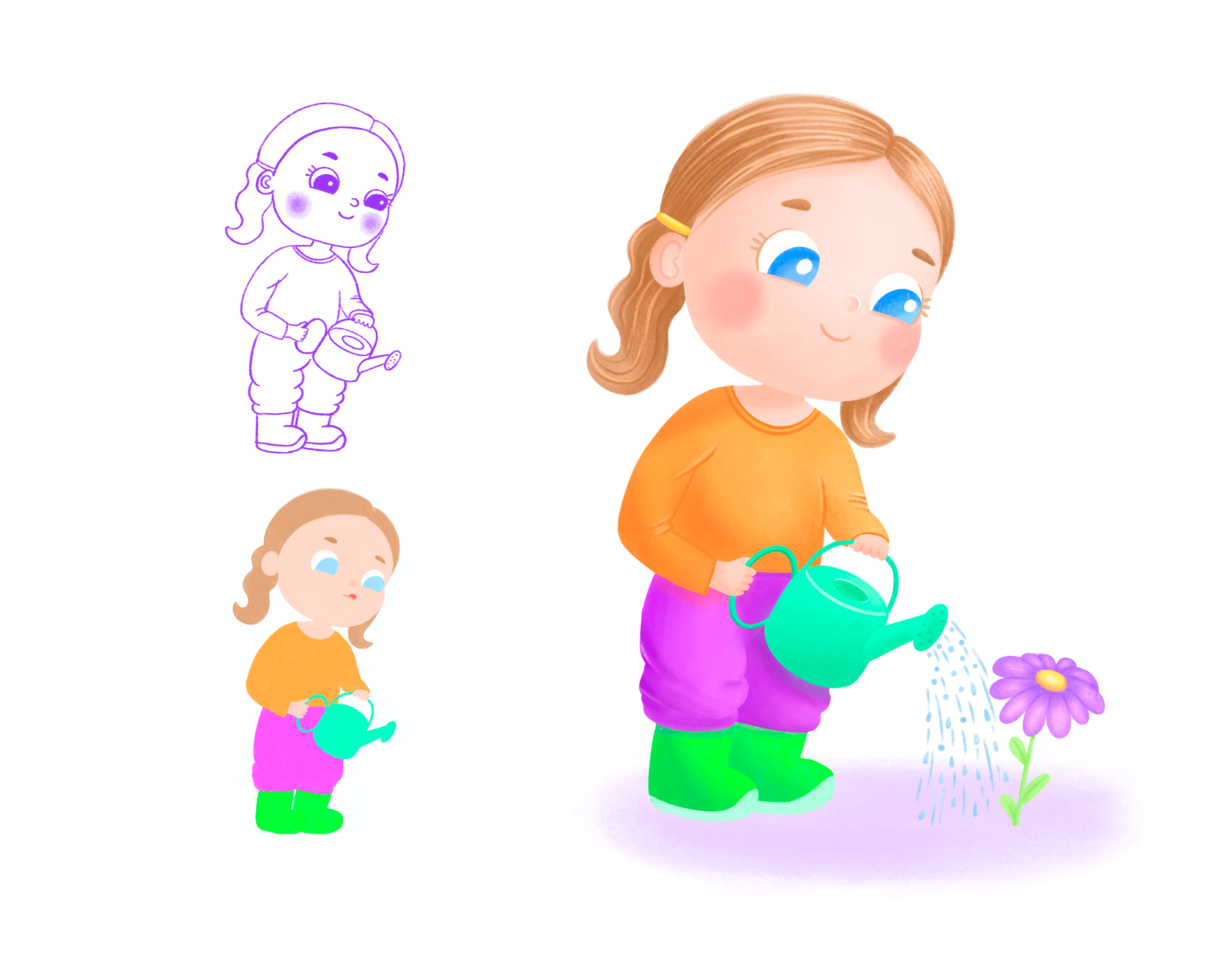 Девочка поливает цветок лейкой