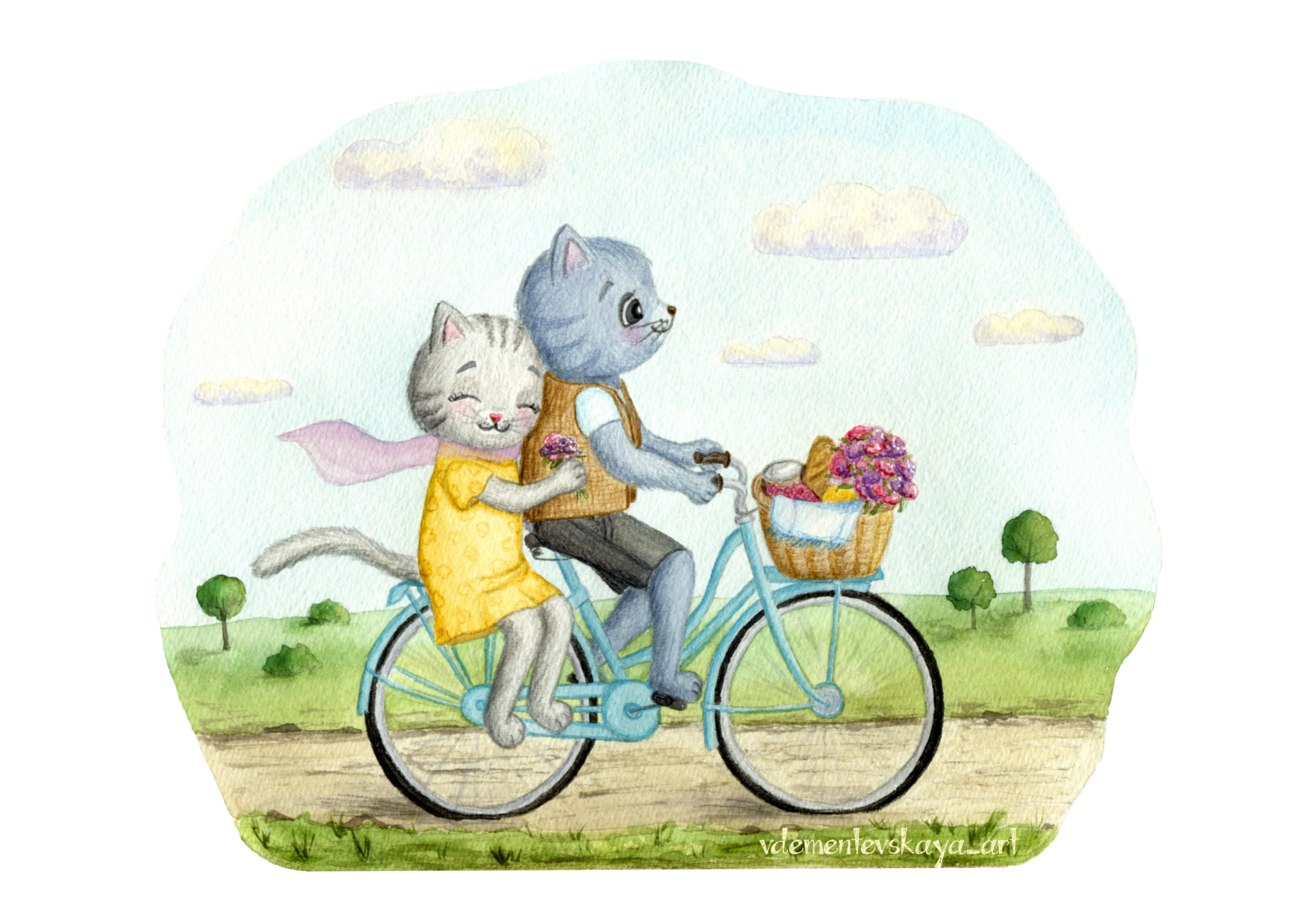 Милые котики на велосипеде