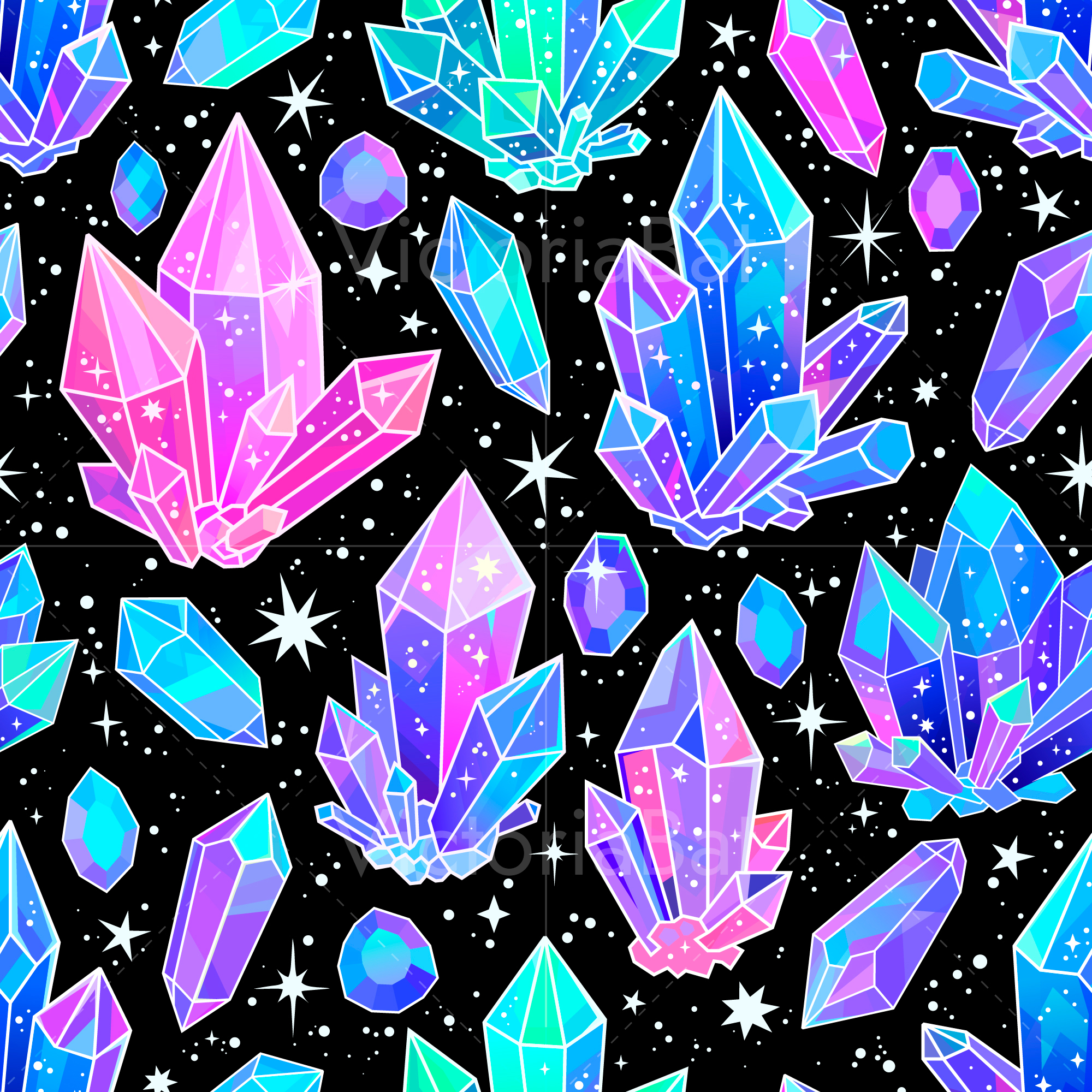 Бесшовный паттерн с яркими стилизованными кристаллами кварца