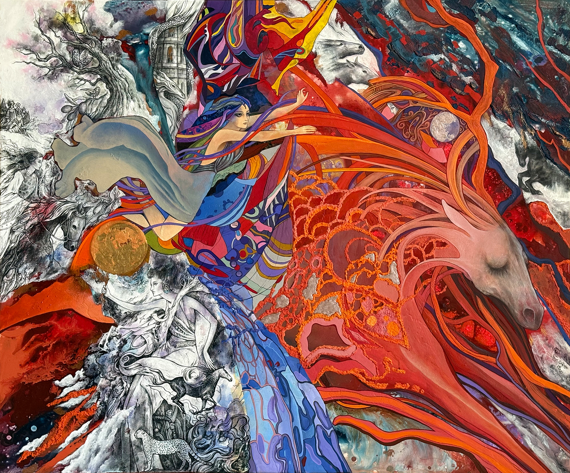 Холст 120х100 см, акрил, уголь, текстурная паста.