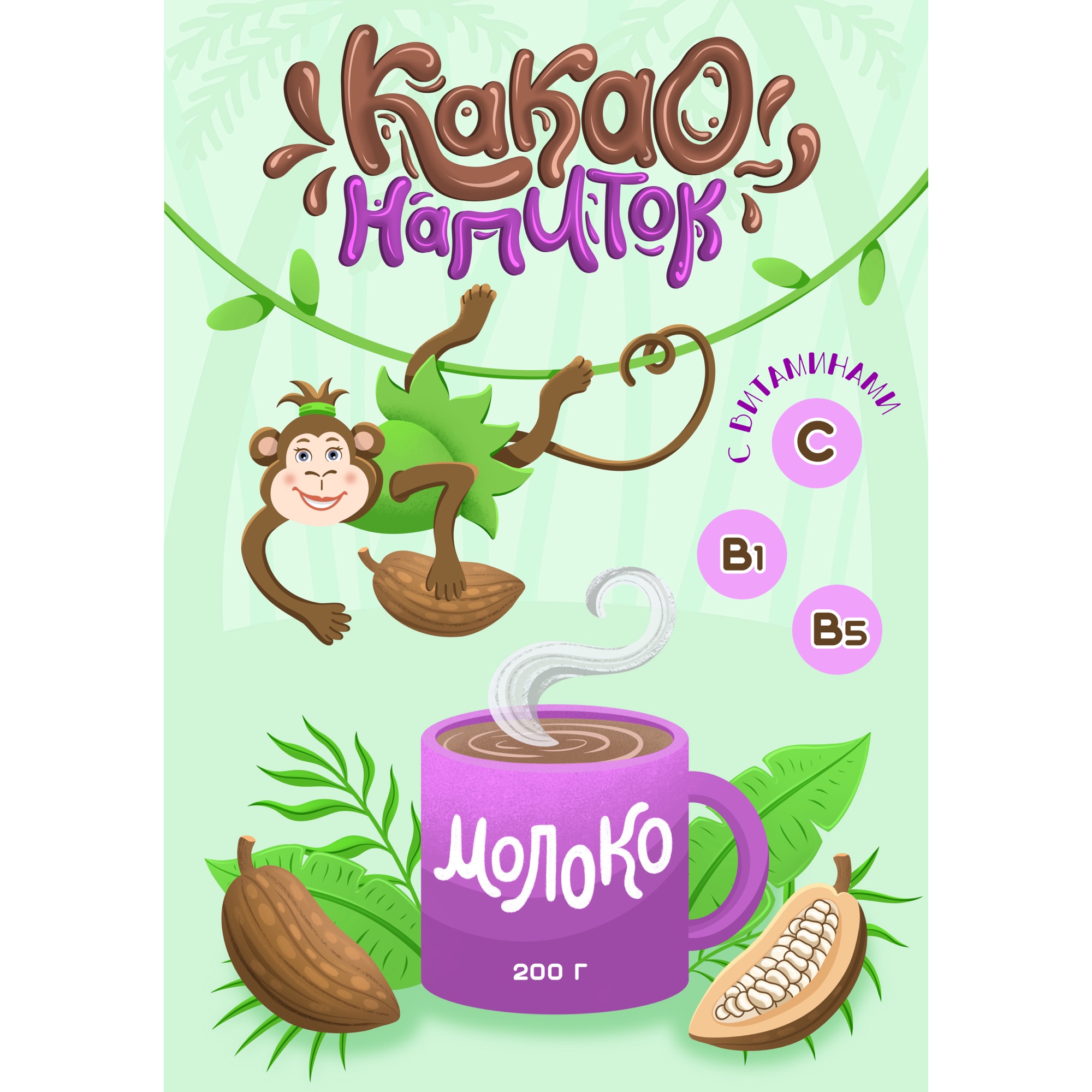 Иллюстрация с обезьянкой для упаковки детского какао