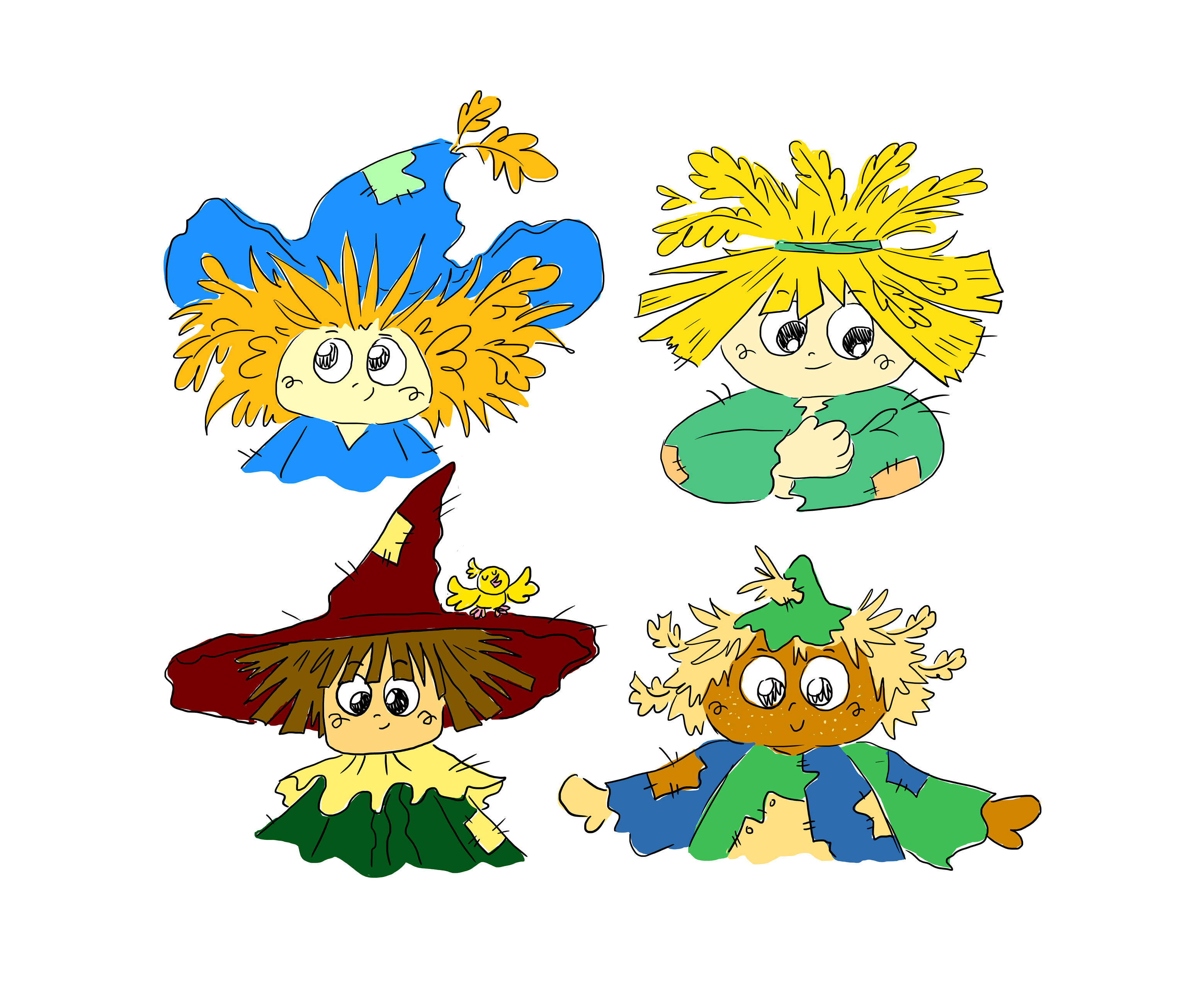 Пример вариантов персонажа "Пугало" из детской книжки А.Волкова "Волшебник изумрудного города"