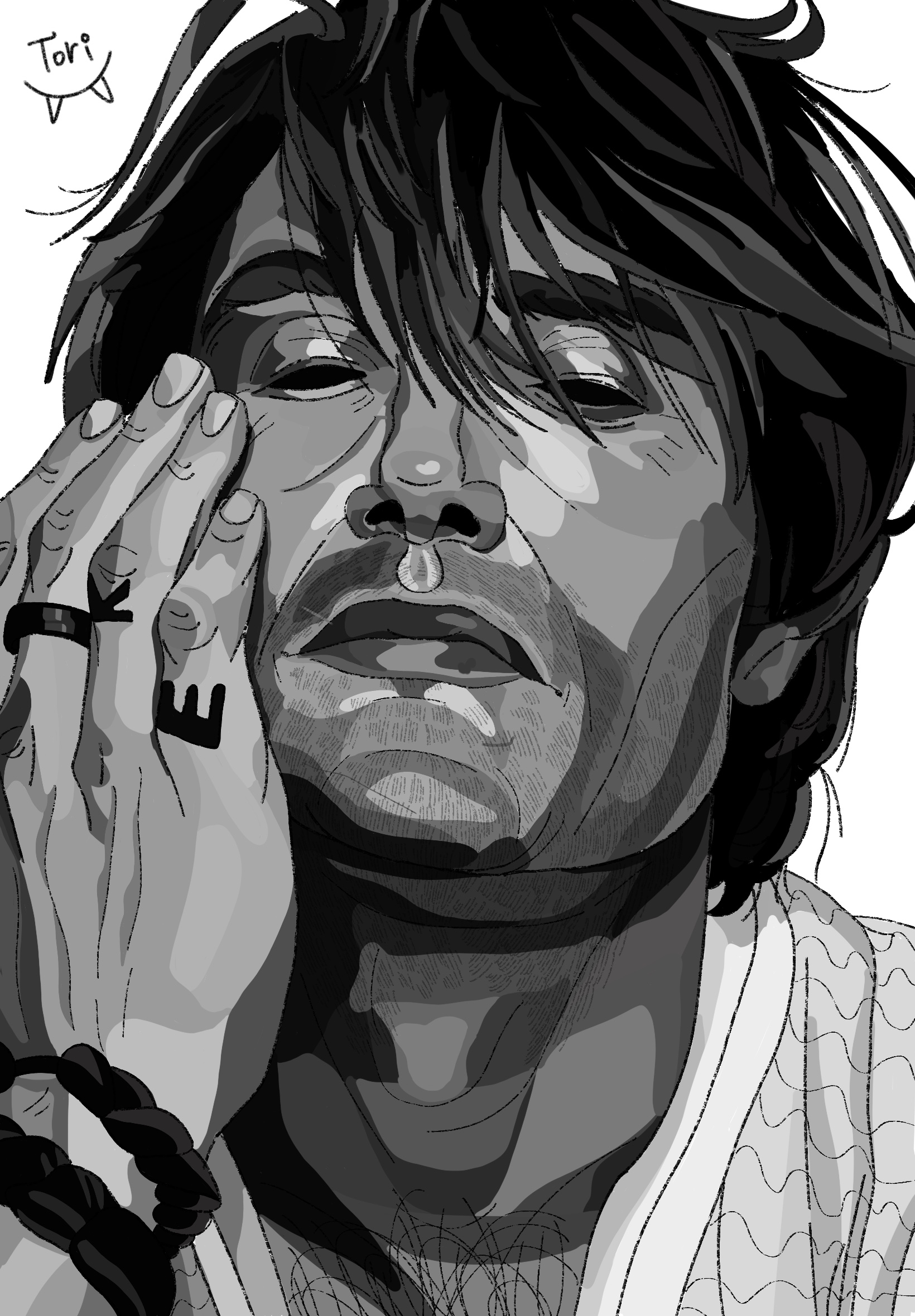 Бесцветный портрет датского актера Мадса Миккельсена