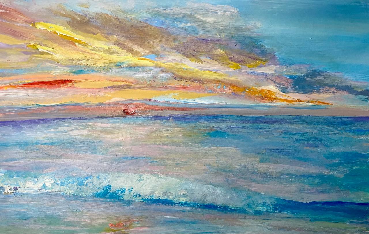 Абстрактный пейзаж, написан акрилом и мастихином на бумаге формата А3