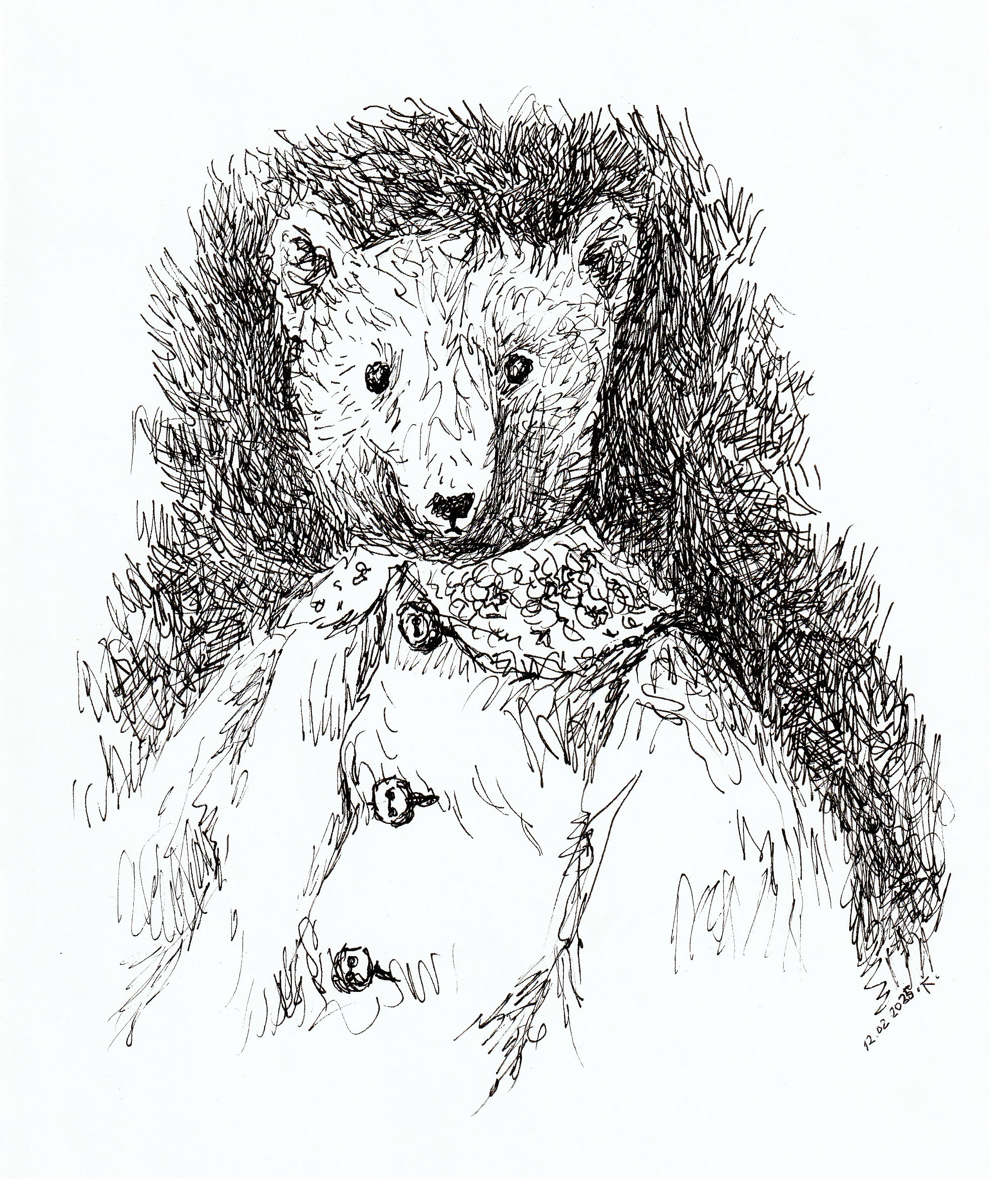 серия рисунков "Семейные портреты. Мишки Тедди". Рисунок черной ручкой.