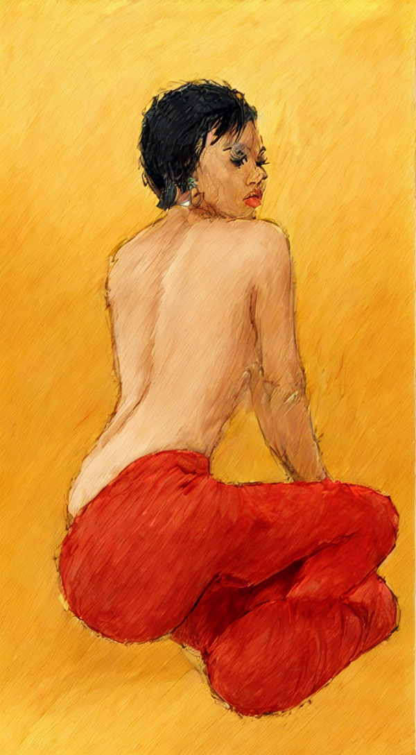 Портрет девушки в красной юбке на желтом фоне