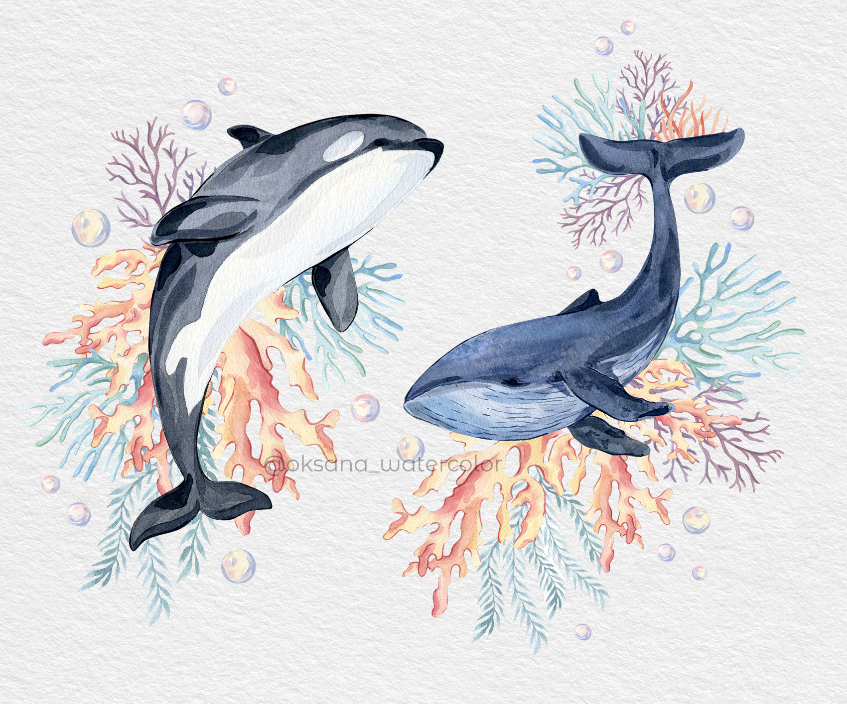 Каждый элемент нарисован отдельно акварелью на бумаге.