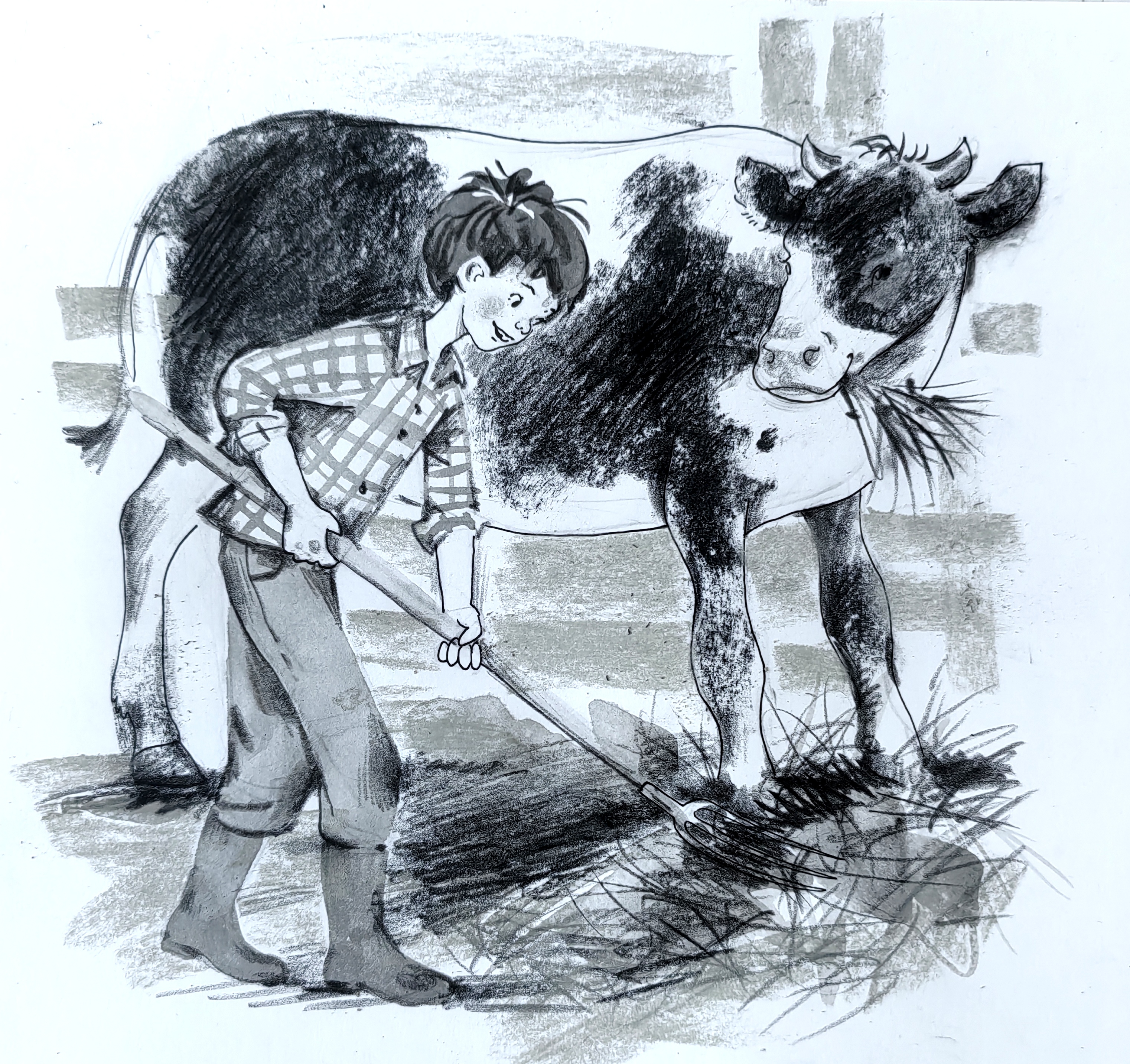 Мальчик работает в хлеву