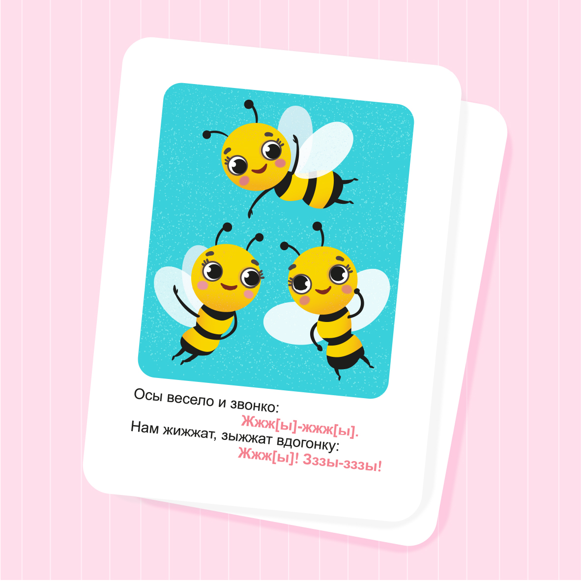 Карточки для детей из серии "Звукоподражание".Осы. Векторная иллюстрация.