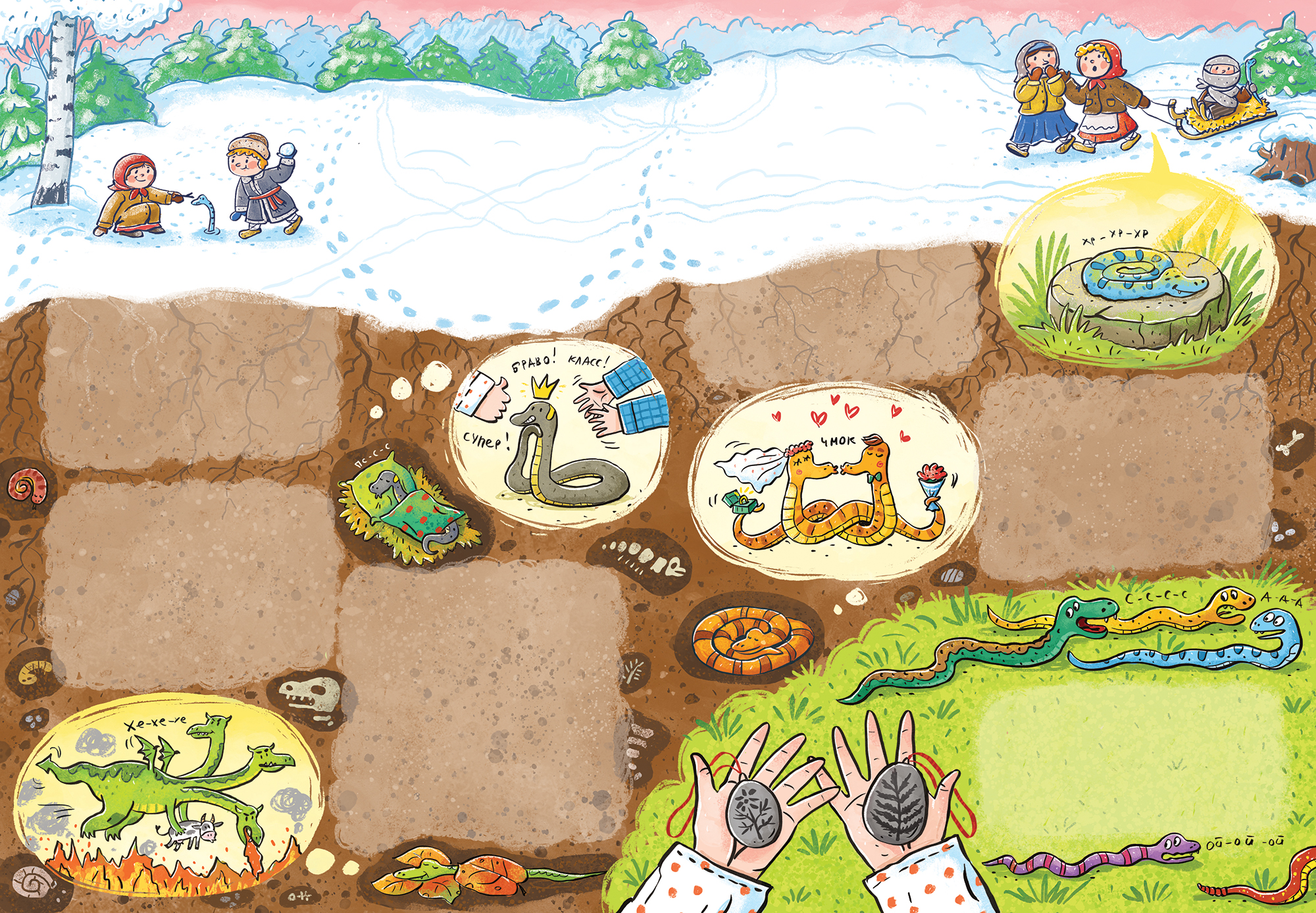 Разворот в первый номер 2025 г детский журнал "Чердобряк " Тема номера "Её величество змея"