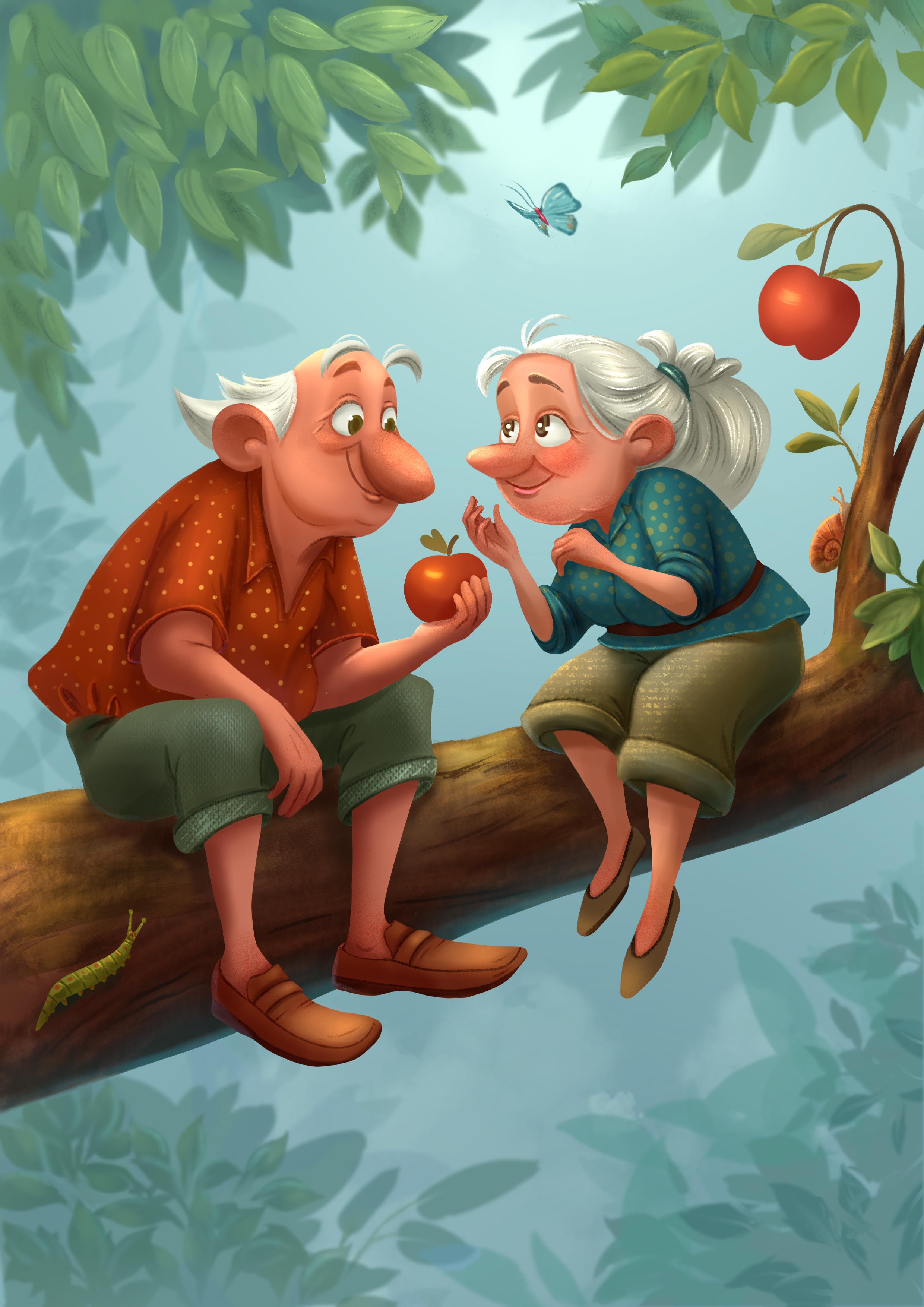 Старички, забравшись на ветку старой яблони, вспомнили детство