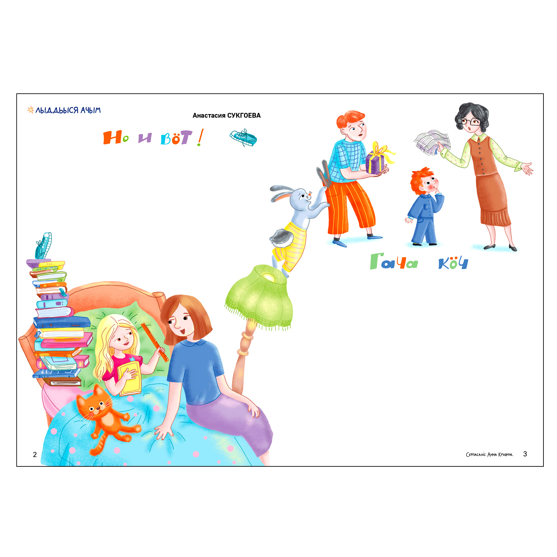 Разворот для журнала "Искорка", май 2025, к рассказам Анастасии Сукгоевой