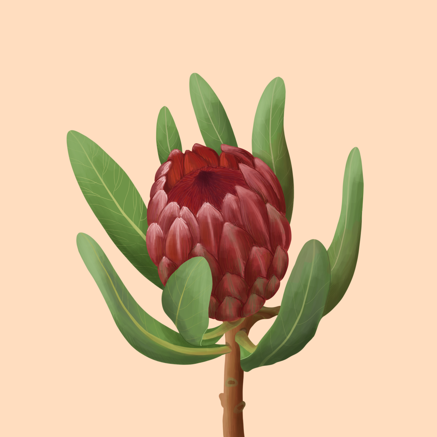 Ботаническая иллюстрация, выполнена в маркерной технике в стиле полу реализм