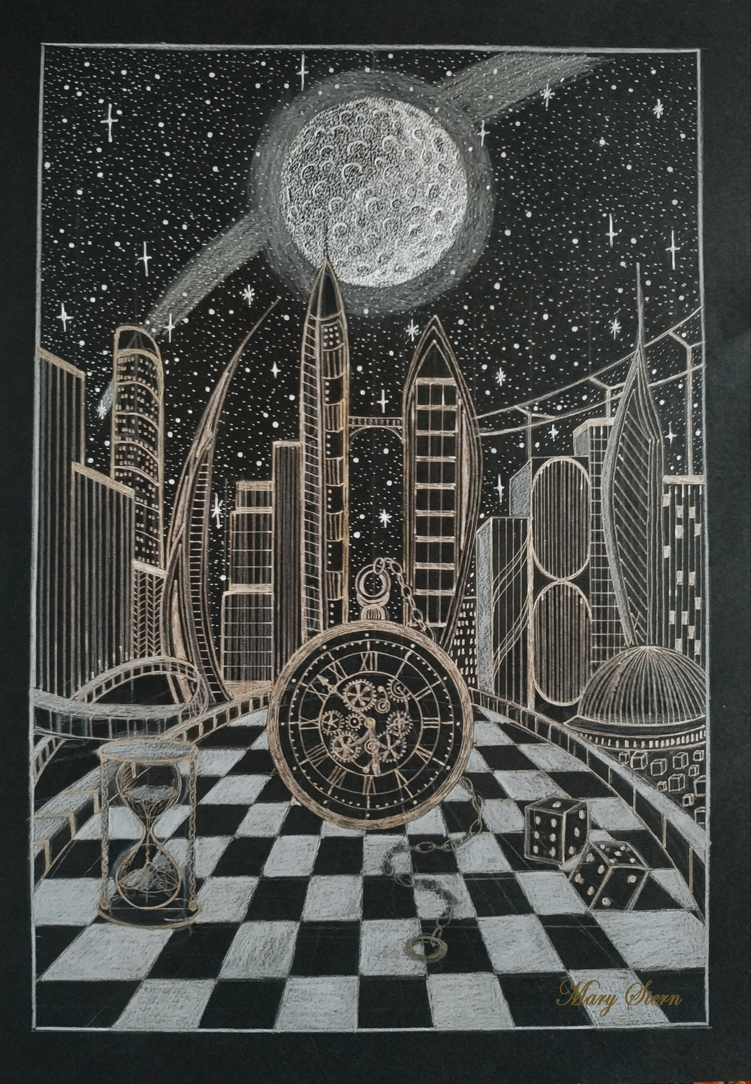 Работа авторская, выполнена линерами и пастельными карандашами от руки. Размер работы 25*37 см