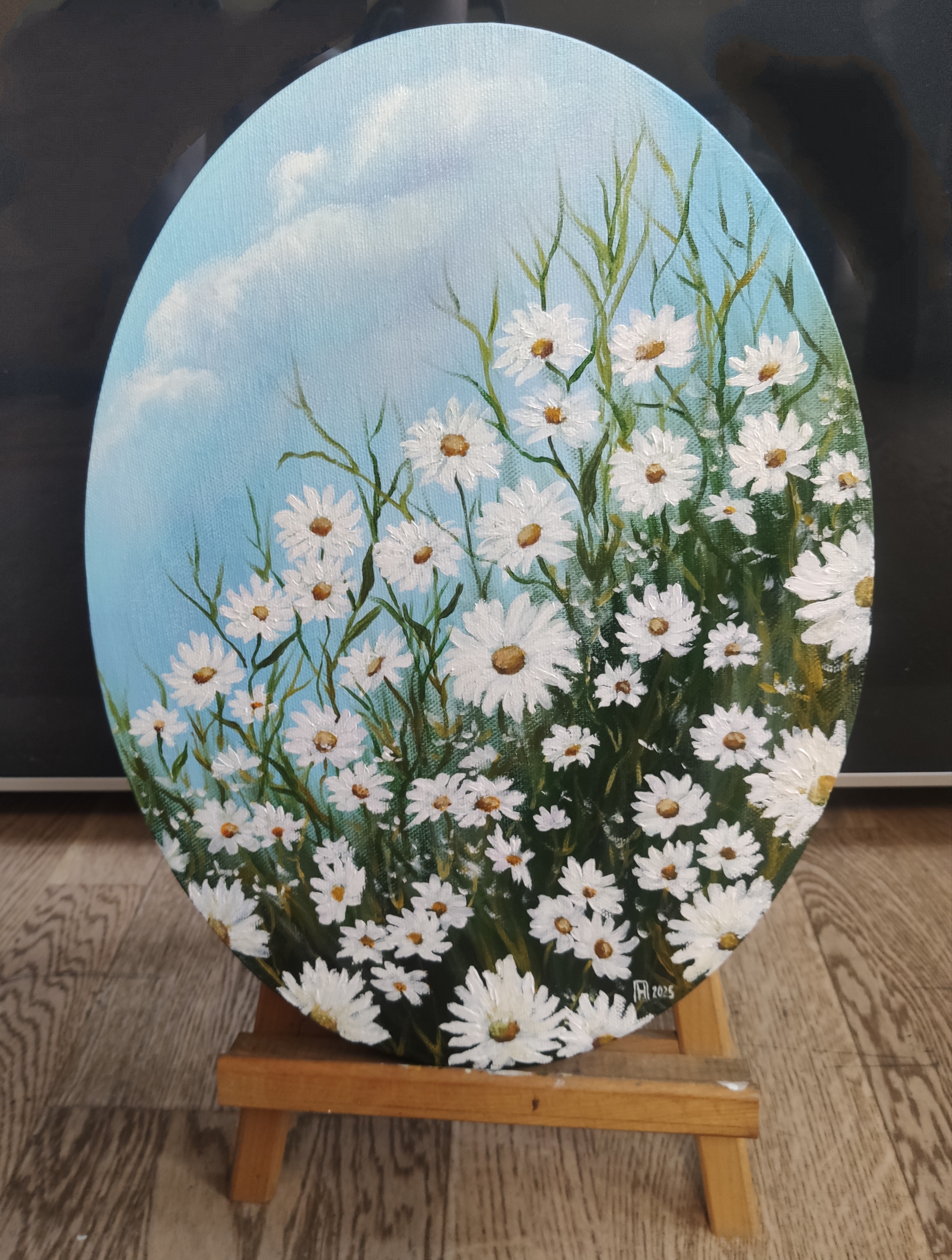 "Ромашки", холст, акрил, 30*40 (овал)