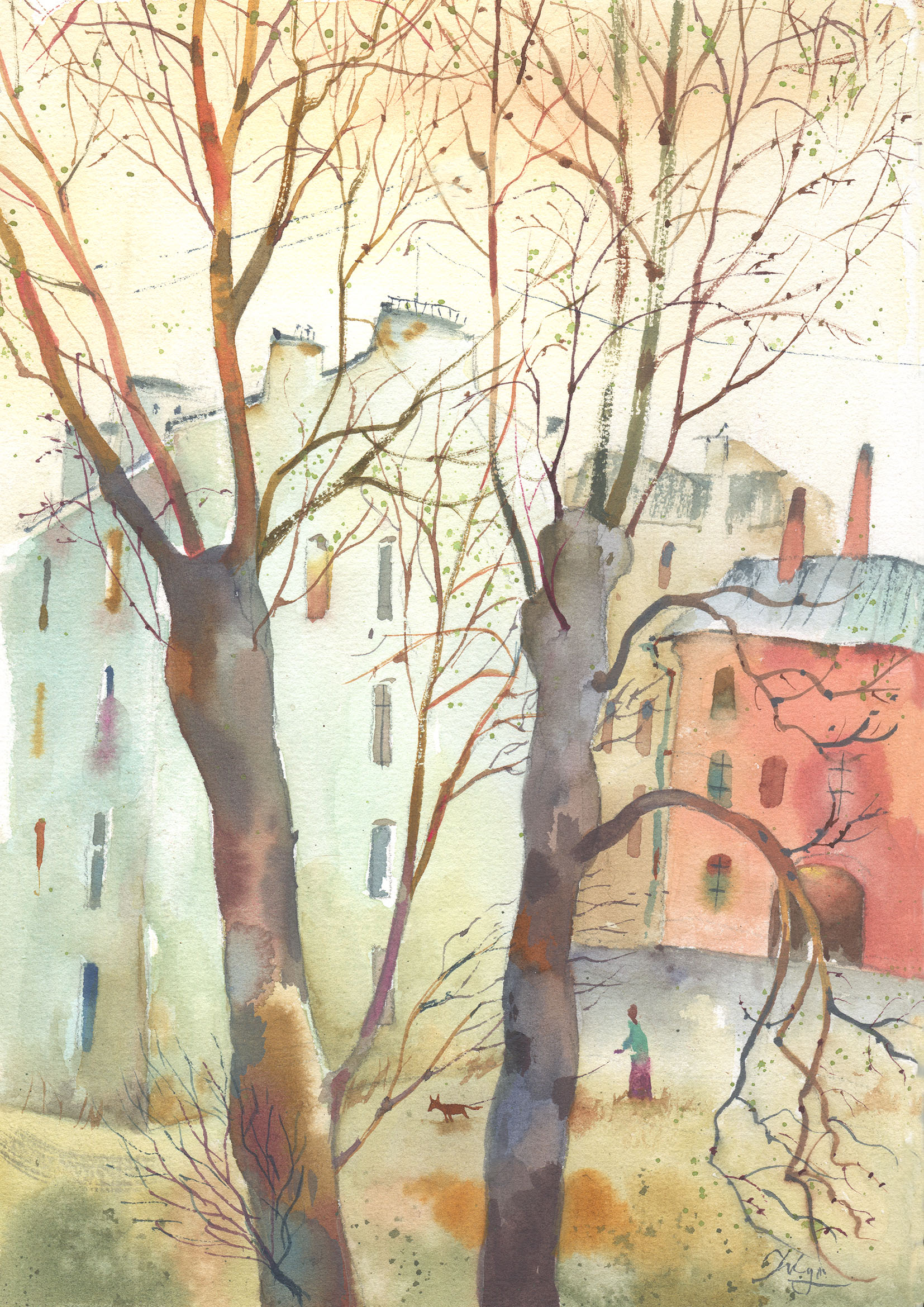 Акварель про дворик на Васильевском острове.