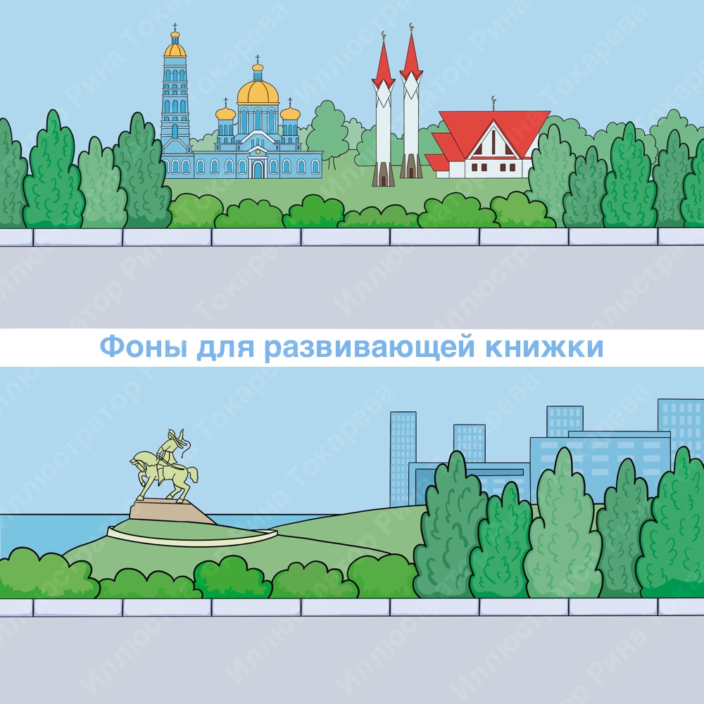 Иллюстрации для частного заказчика. Книга с элементами на липучках показывает детям достопримечательности Уфы и быт жителей.