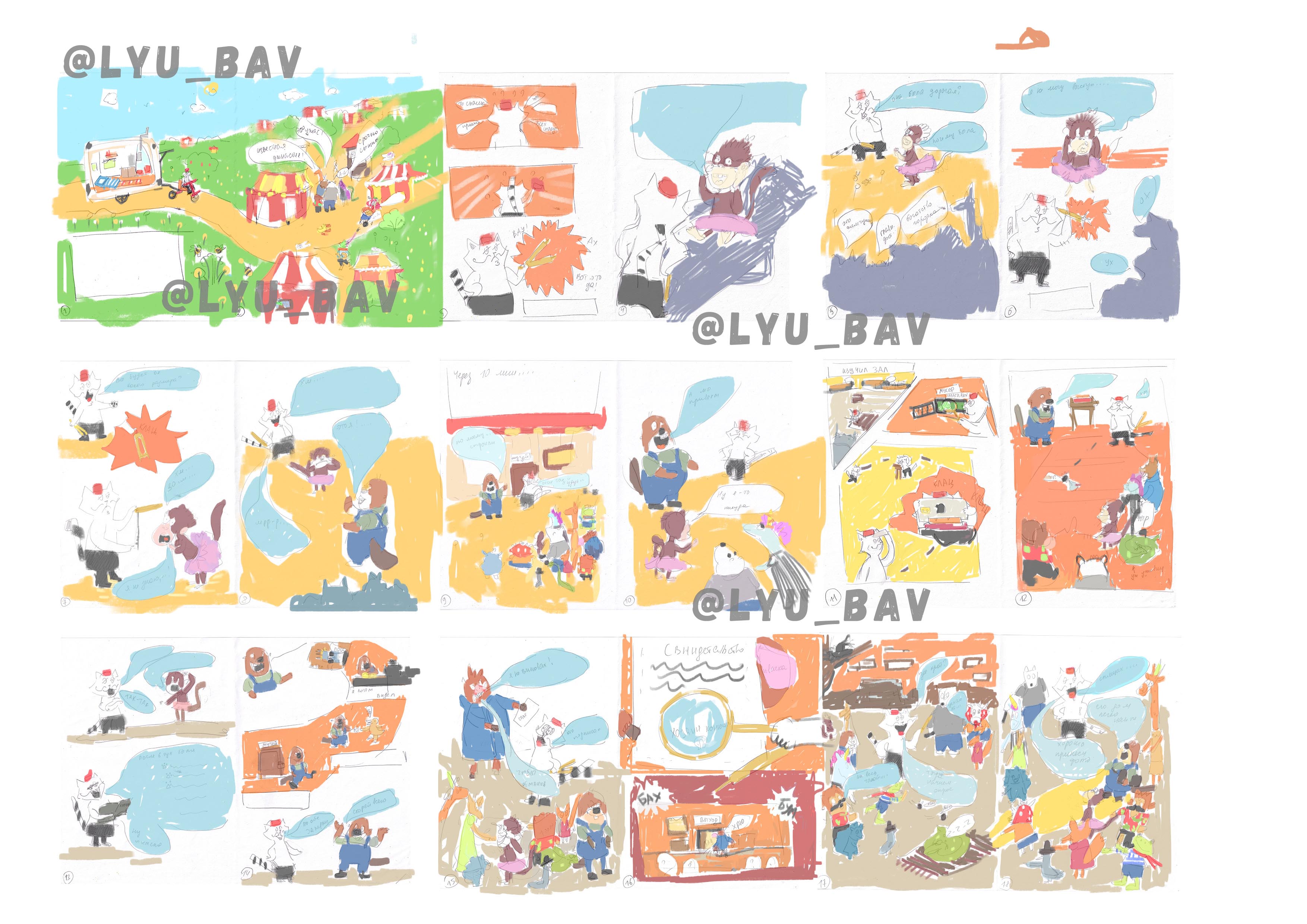 Раскладка раскадровка к детскому комиксу
