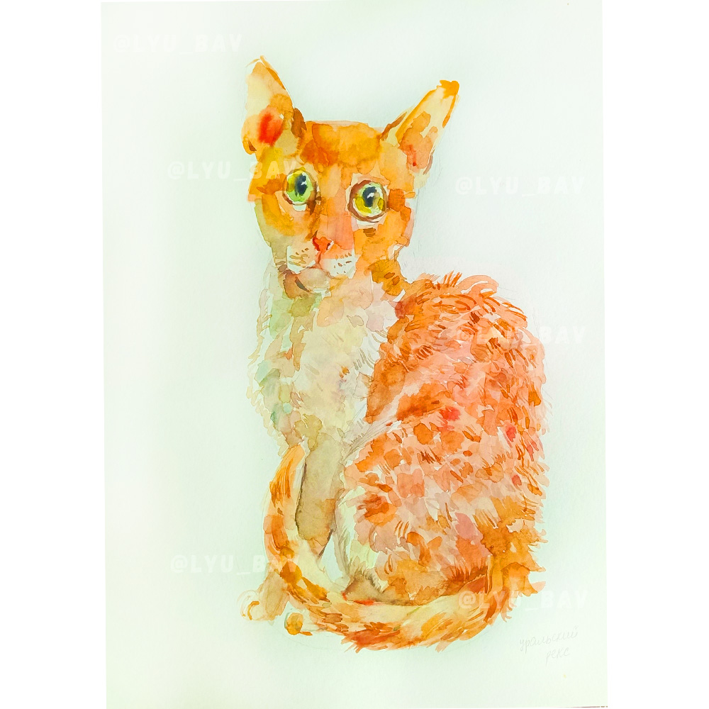 Кот акварельный рыжий