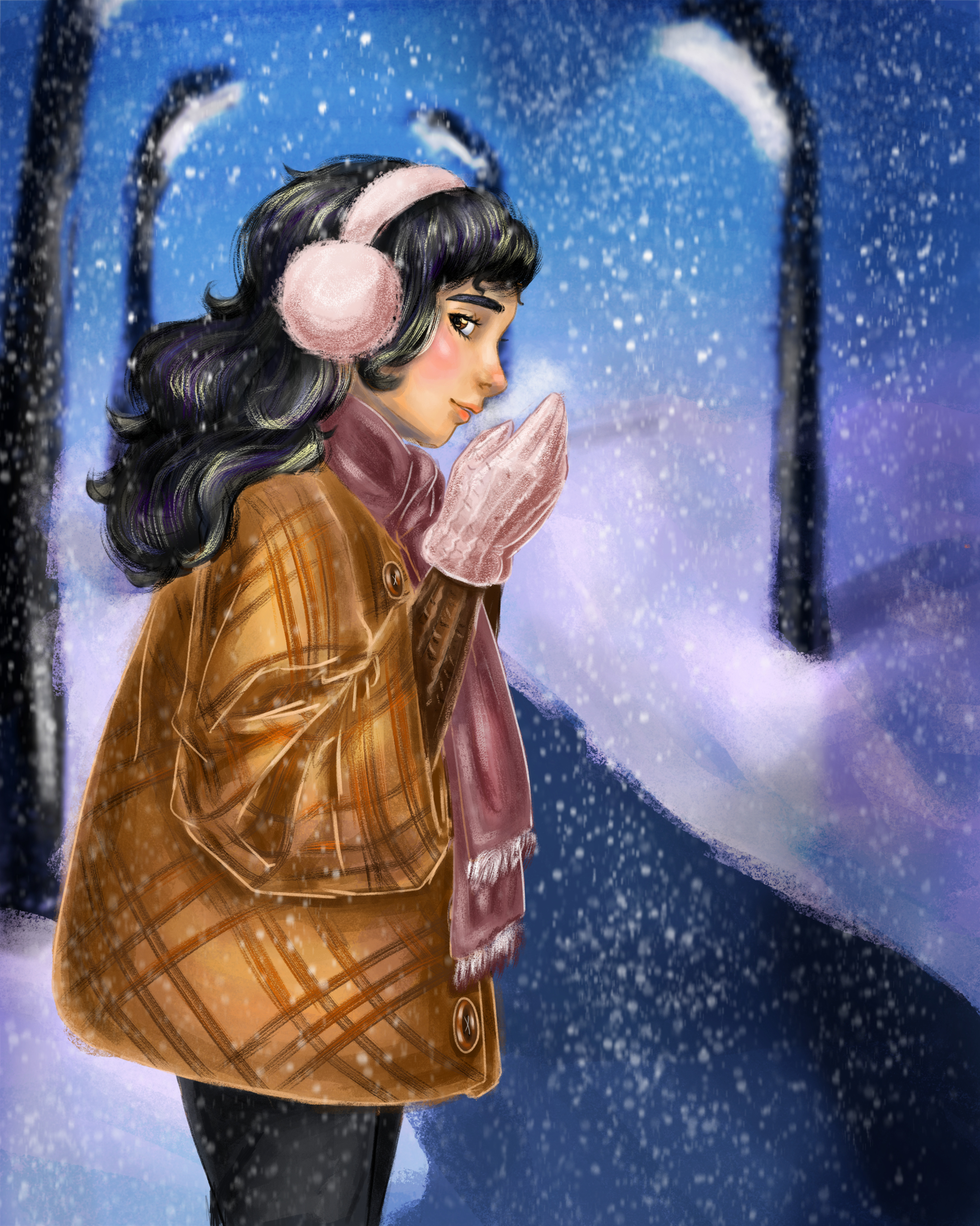 Иллюстрация на зимнюю тематику с оригинальным персонажем