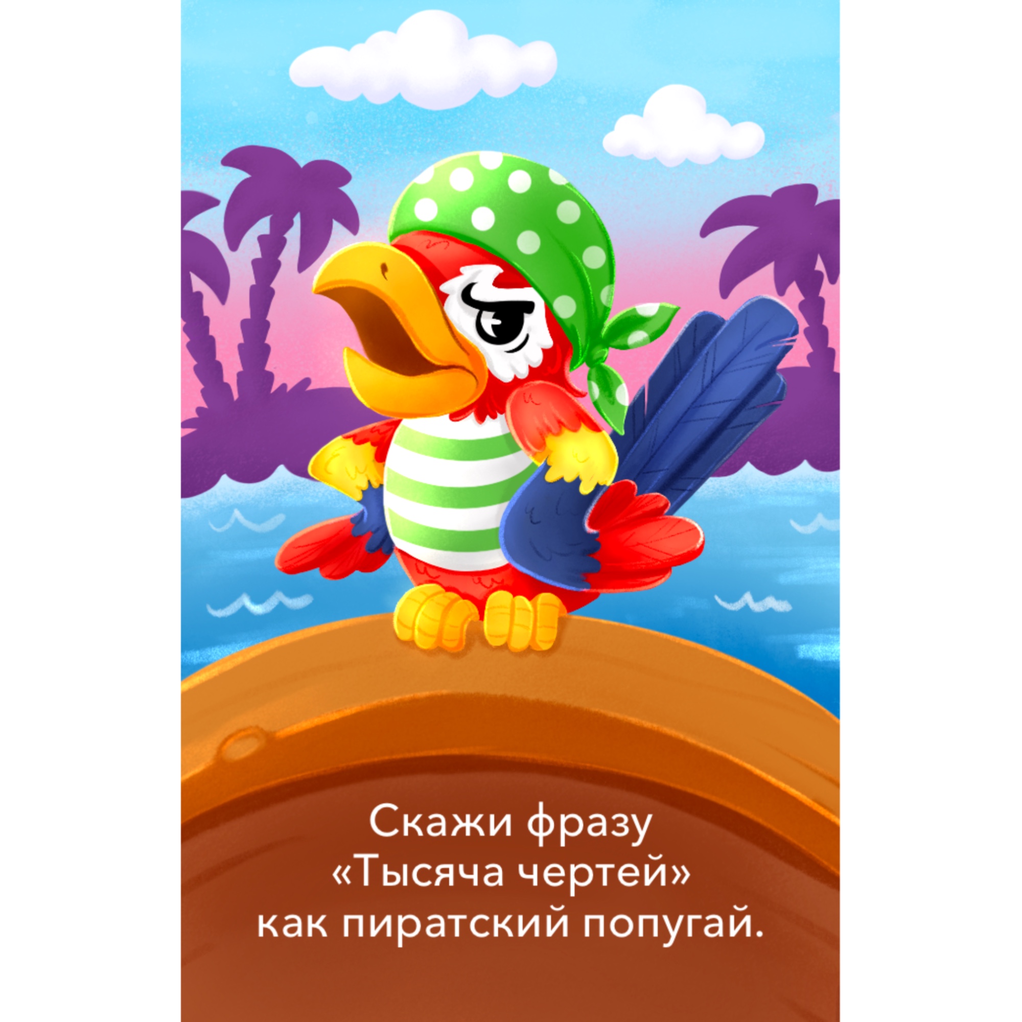 Карточка для настольной игры Тайны островов. Попугай пират.
