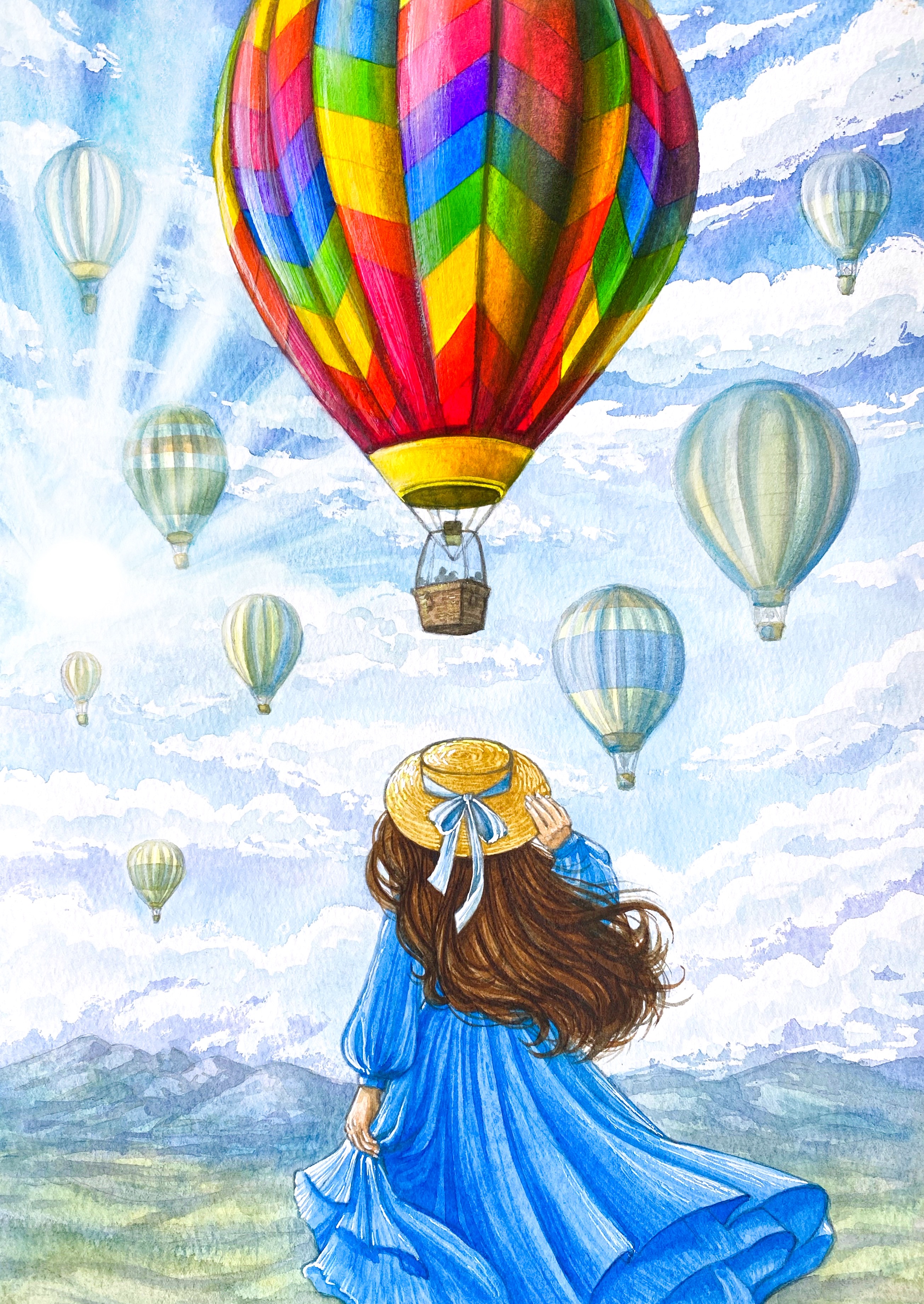 Иллюстрация акварелью для колоды карт МАК. Фестиваль воздушных шаров в Каппадокии. Мечтаю полетать на таком!