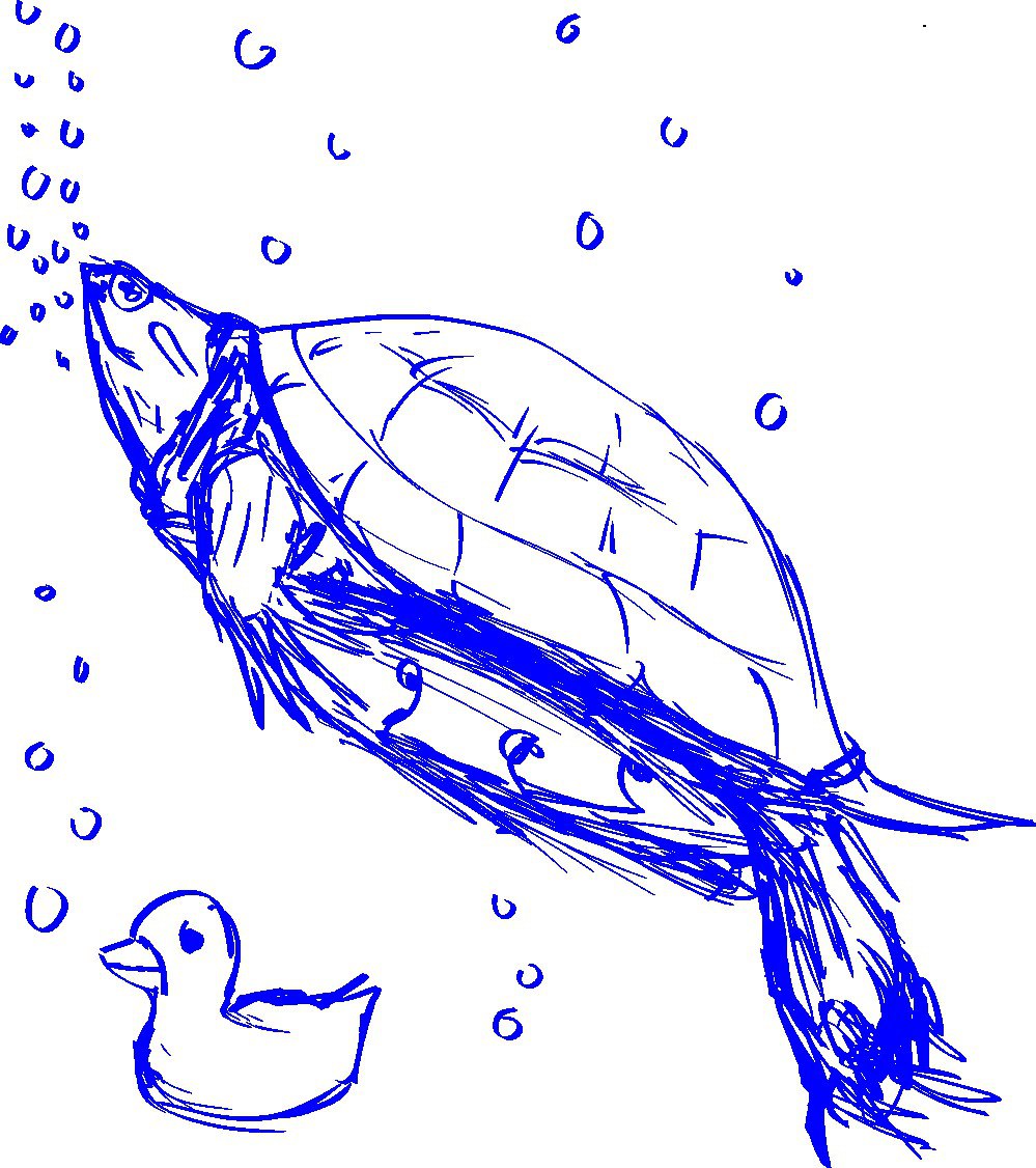 Быстрый скетч, зарисовка своей черепахи. Он очень любит свою уточку (иногда только кусает), часто спит с ней в обнимку