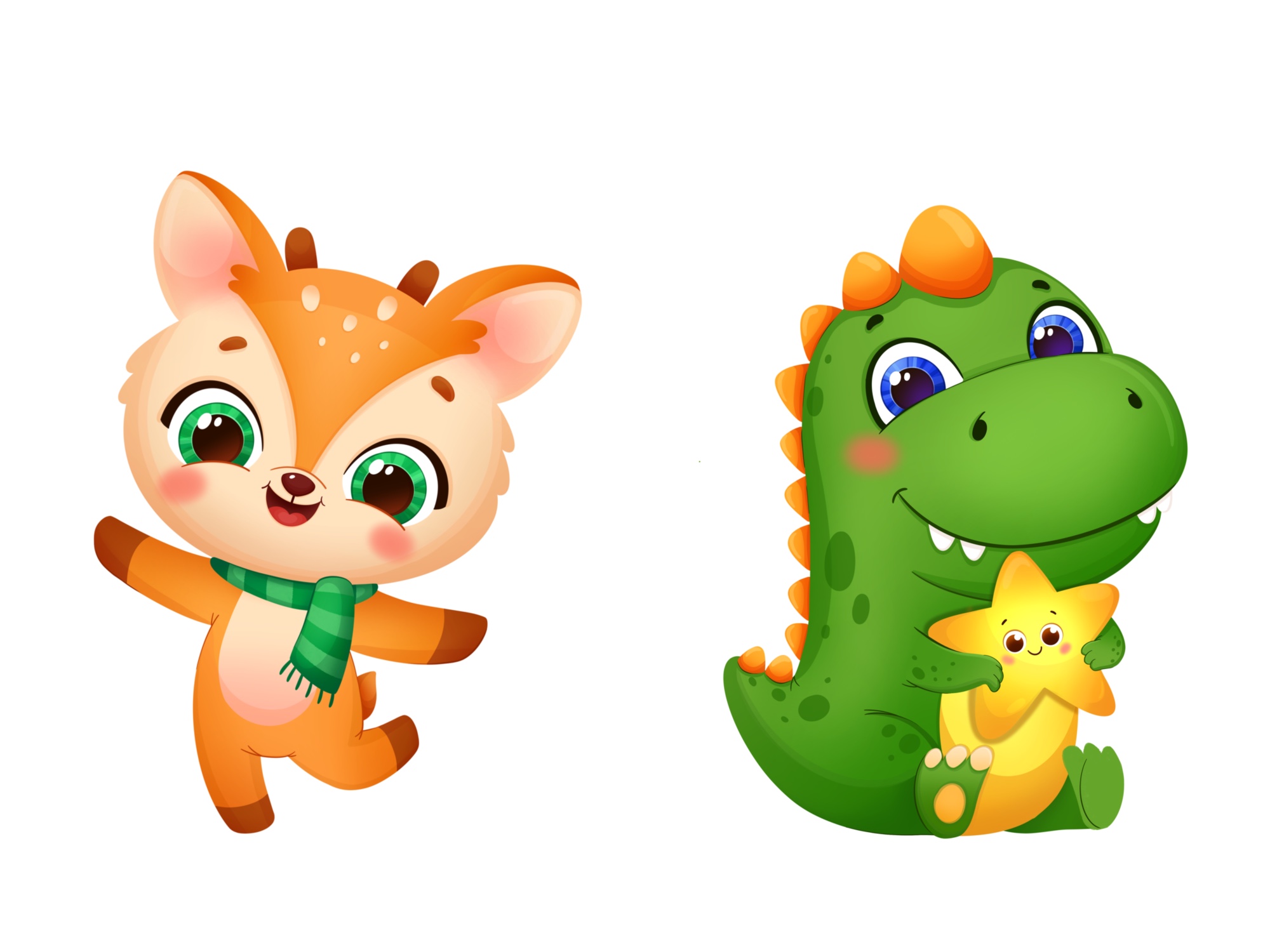 Милые зверята Олененок и Динозаврик
