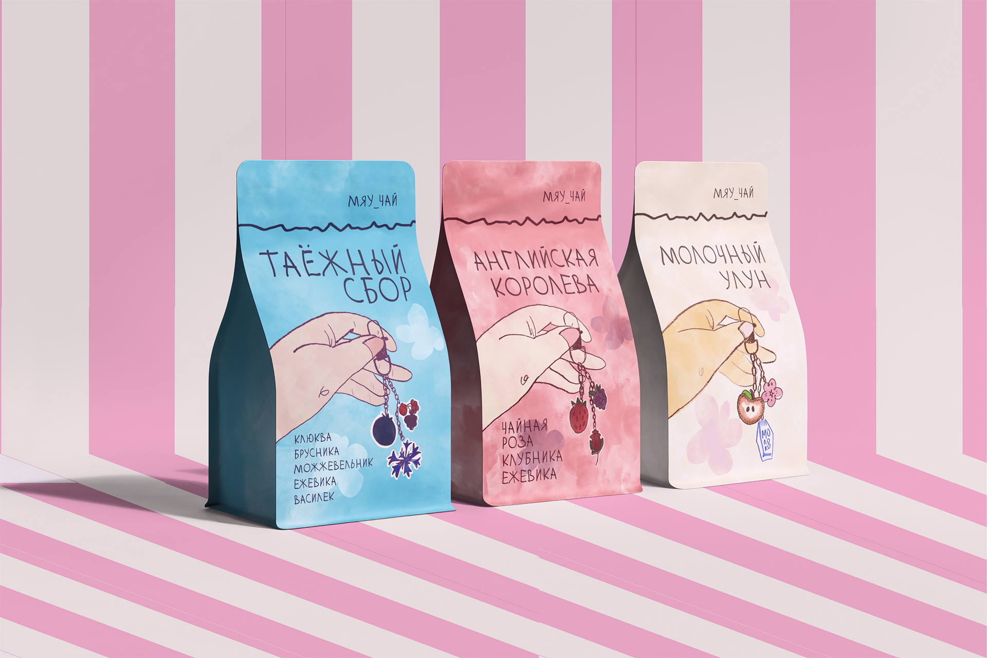 Концепция: брелок на упаковке чая отражает вкус напитка, включает его ингридиенты.