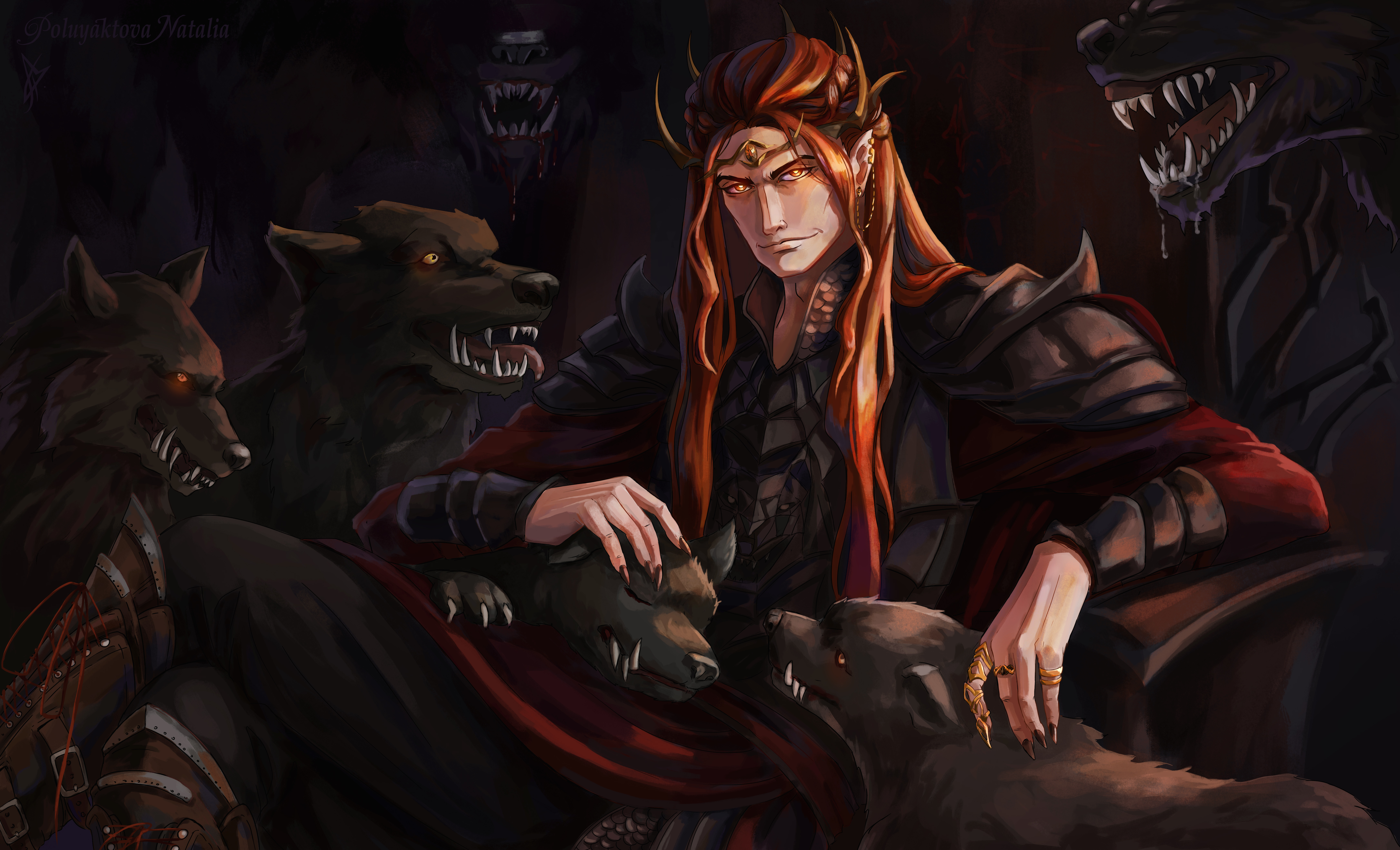 Саурон с волками-варгами из Легендариума Дж. Р. Р. Толкина.