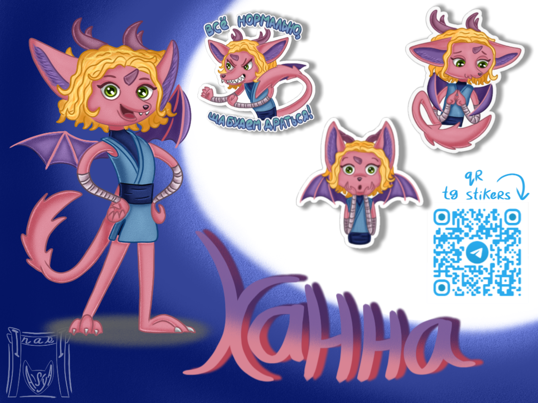 Стикерпак с мои придуманным персонажем лисодраконом по имени Ханна