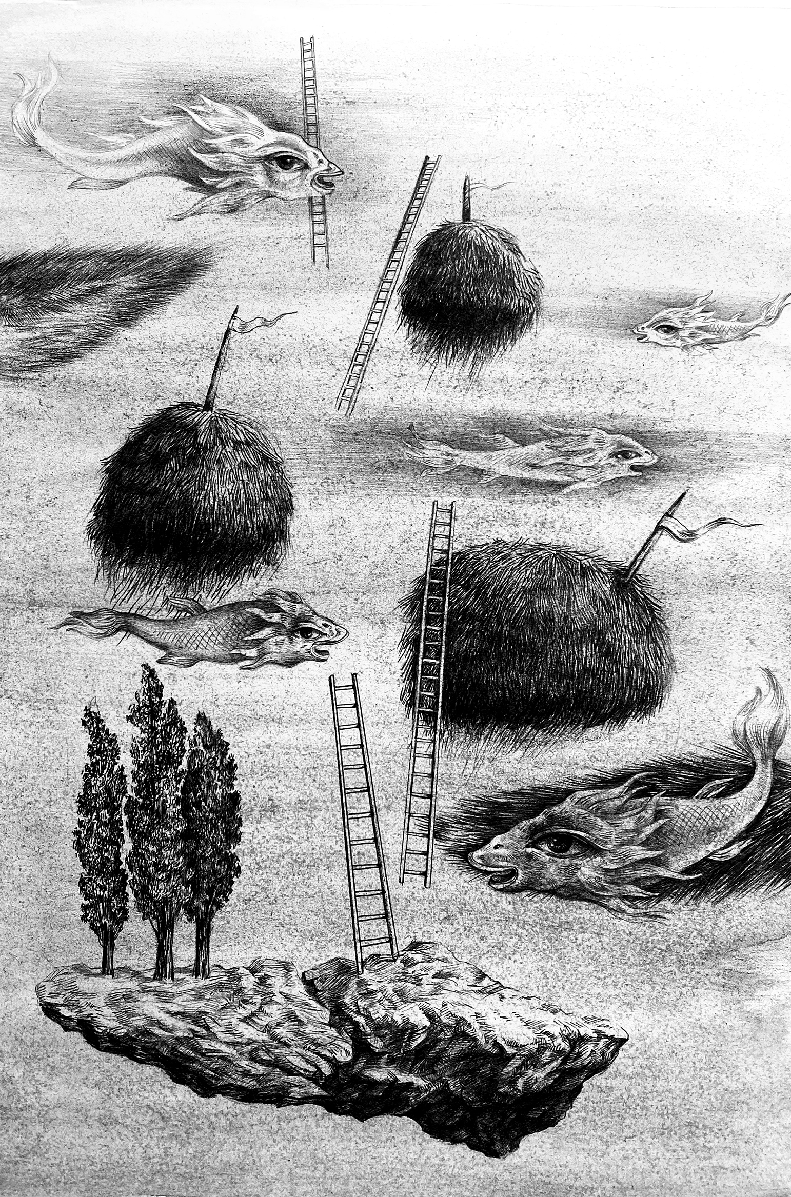 Сюрреализм в чистом виде - движение рыб по небу между стогов сена