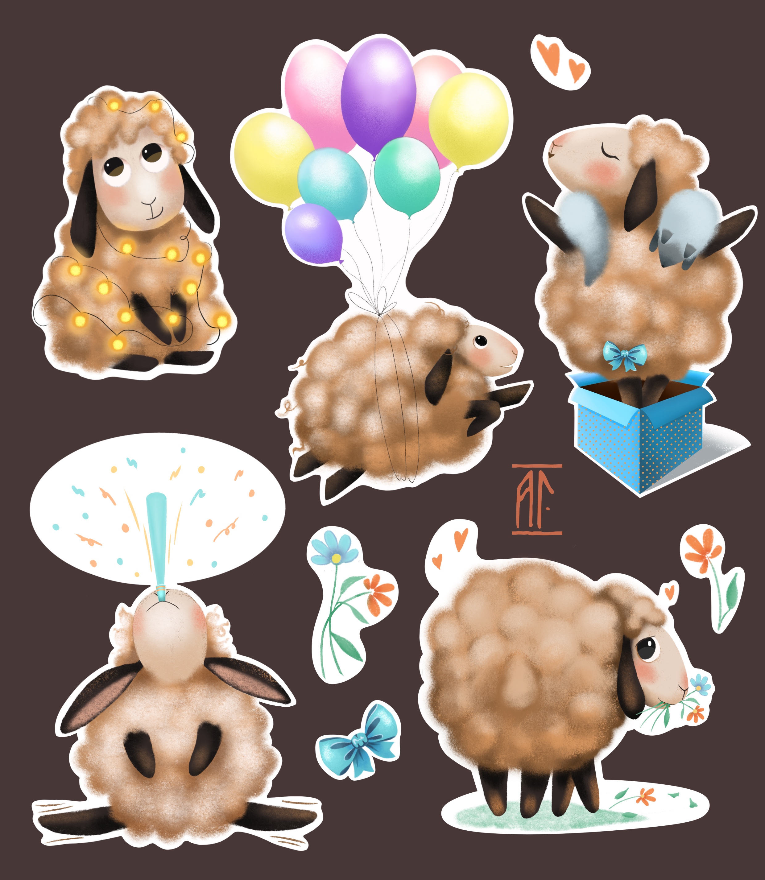 Праздничные стикеры с милой овечкой