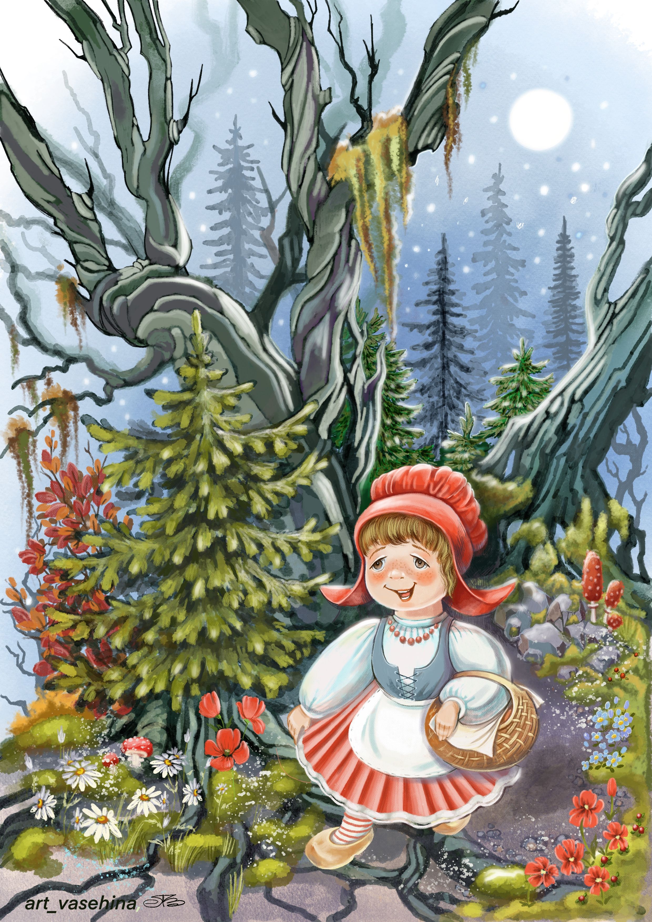 Красная шапочка в вечернем лесу