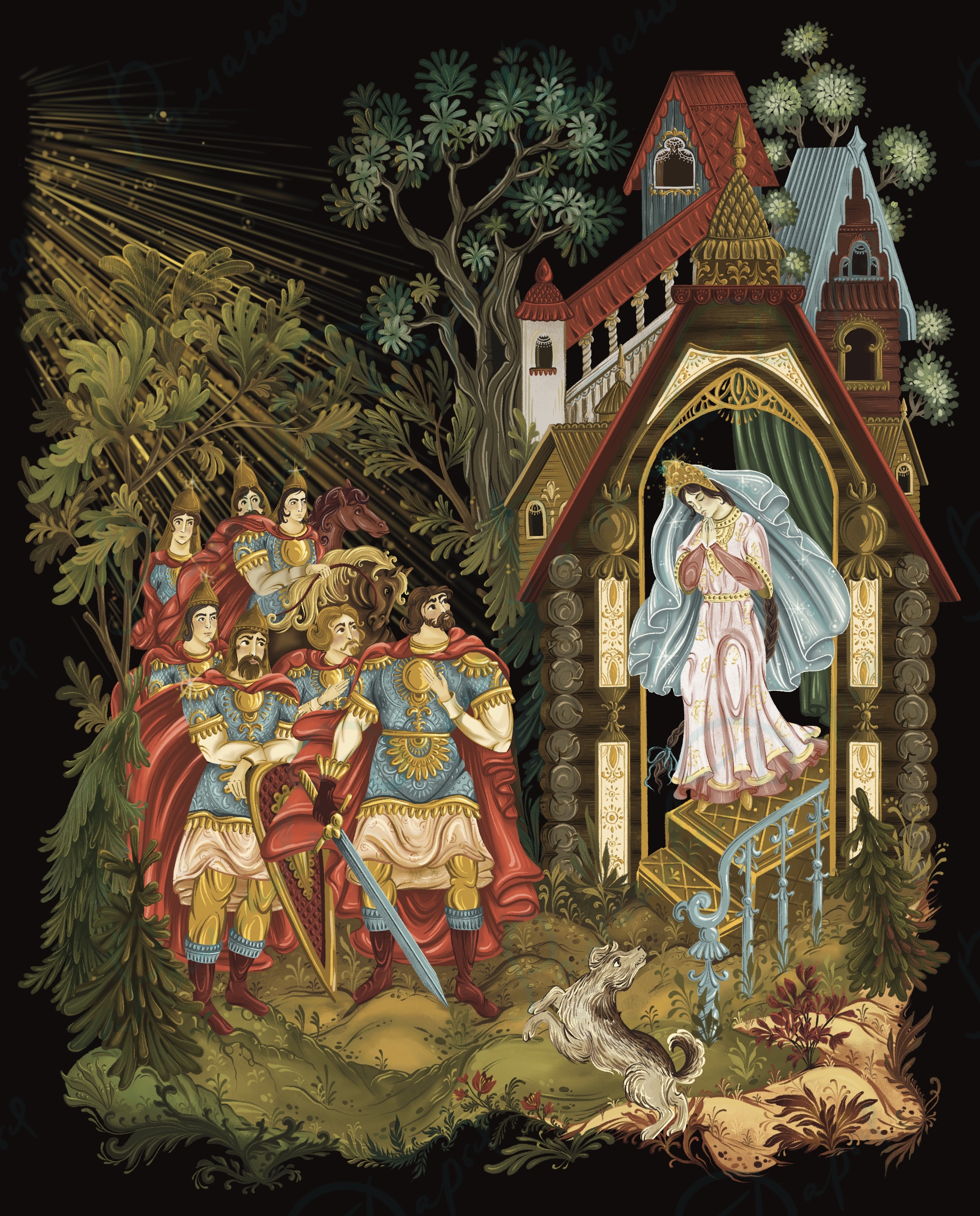 Иллюстрации к “Сказка о мертвой царевне и о семи богатырях» в стиле палехской росписи Издательство VoiceBook