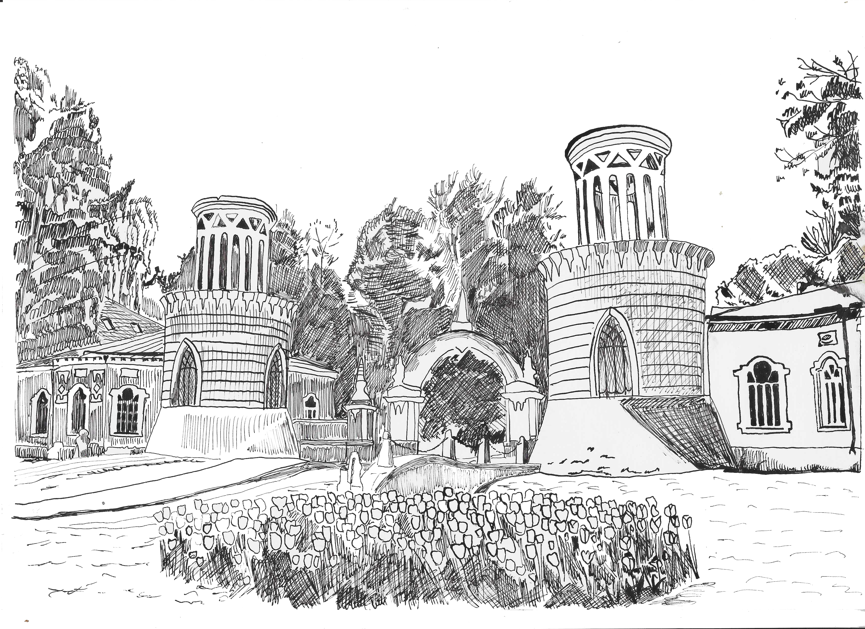 Воронцовский парк, Москва. Тушь, перо.