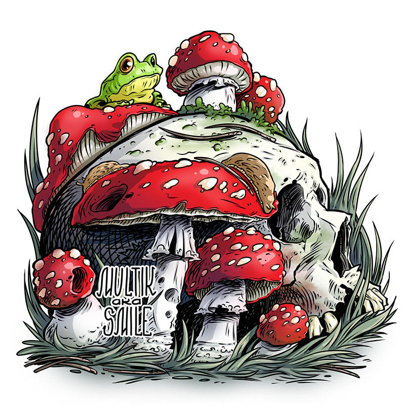 Череп в мухоморах