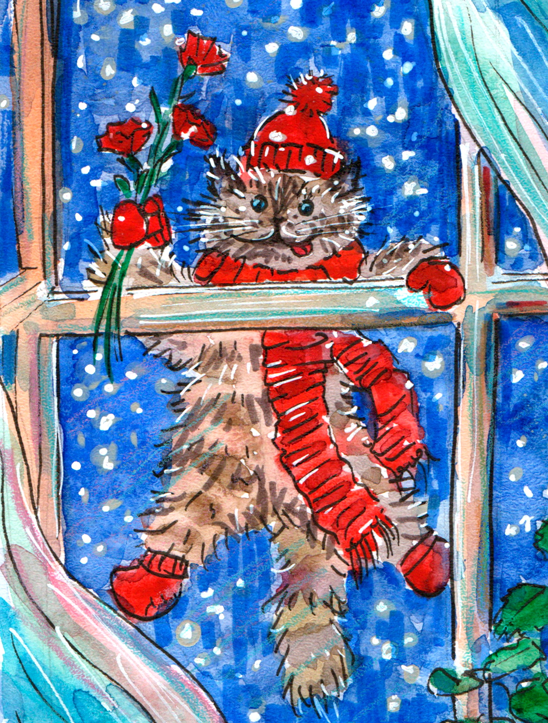Котик с цветами