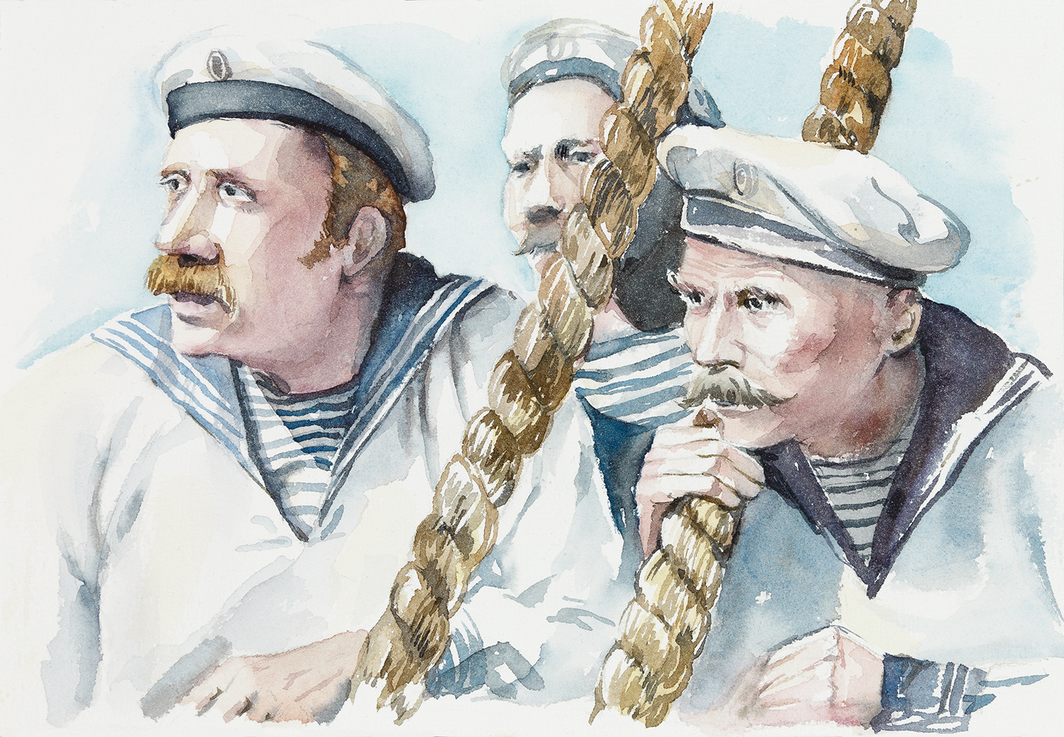 Иллюстрация к книге об адмирале П.Нахимове, в итоге несколько изменена, т.к. в процессе выяснилось, что моряки должны быть без воротничков :))) и значки с беретов убрали. Книга готовиться к печати