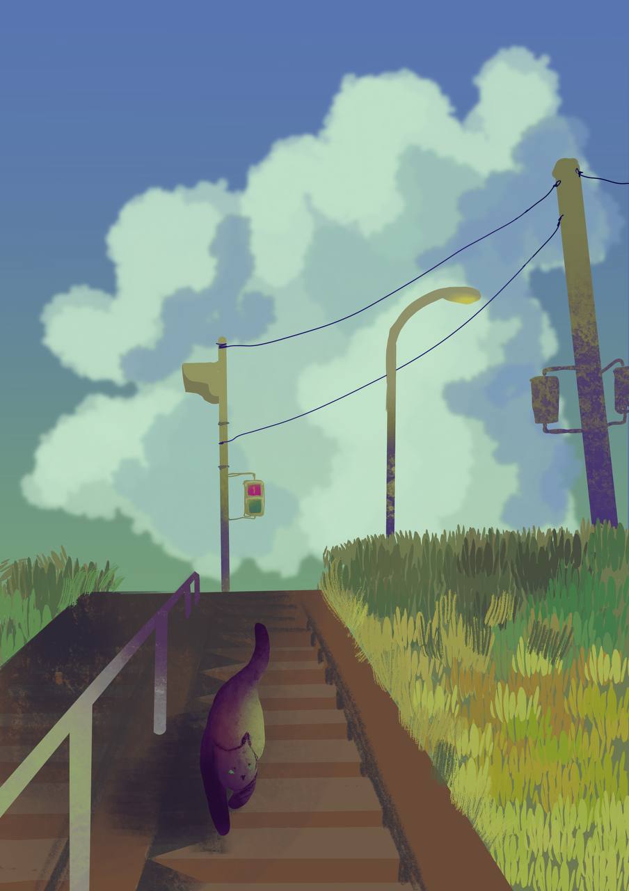 Кот спускается по лестнице