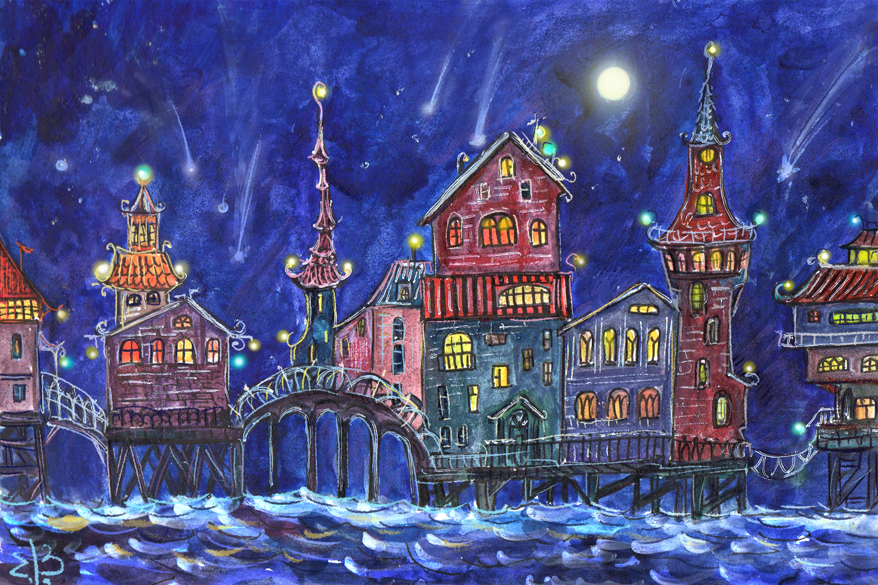 Серия работ "Акварельные Города" Акварельная иллюстрация в смешанной технике: акварельная бумага, акварель, карандаши, линеры, маркеры и т.д.