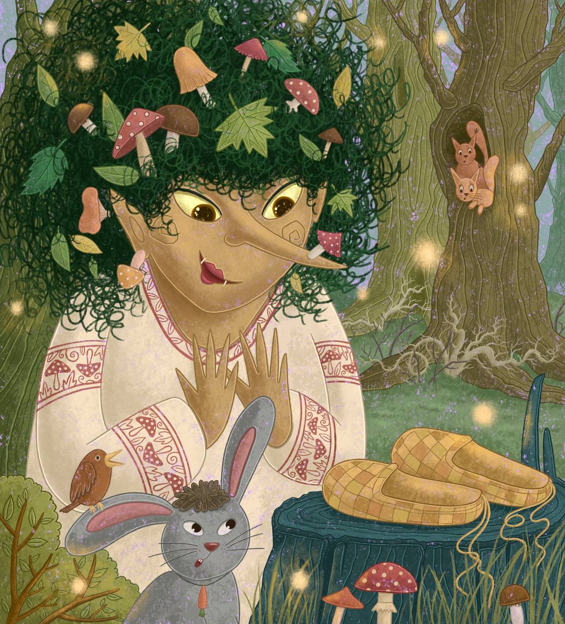 очень нравится! прическа и грибочки в волосах и на рубахе, кулон-морковка у зайки - 😍