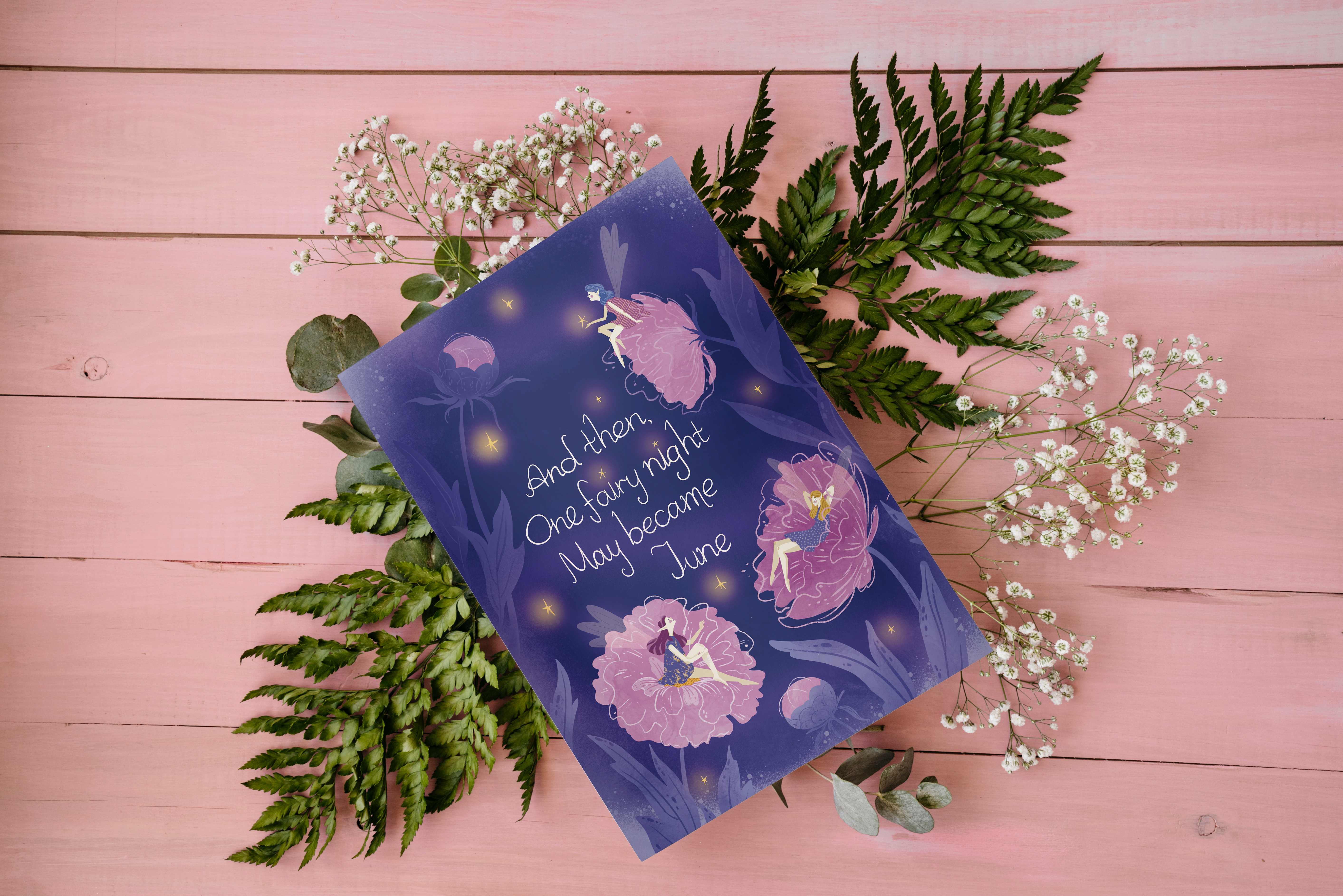 Однажды я решила праздновать Новый Год летом в ночь с 31 мая на 1 июня. И эта цитата Скотта Фицджеральда из произведения "Красивые и проклятые". Эту открытку я подготовила к Летнему Новому Году 2025 года.