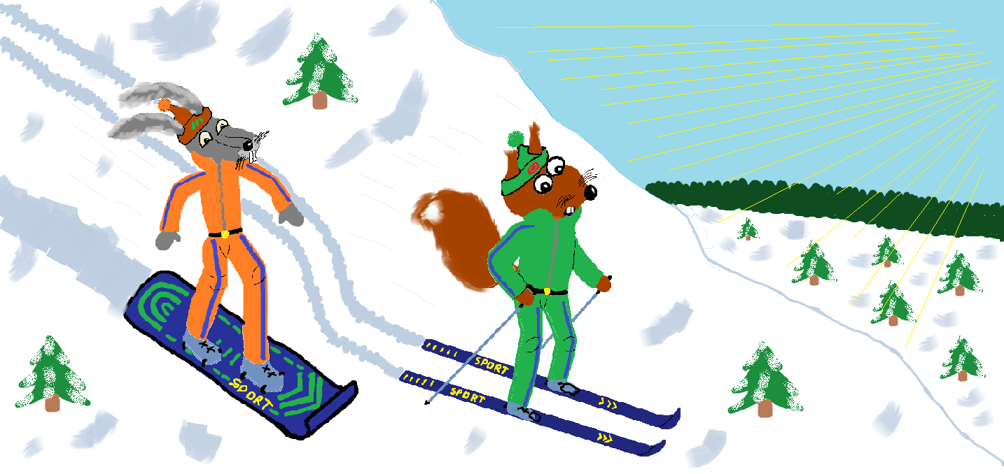 Заяц с белкой соревнуются.