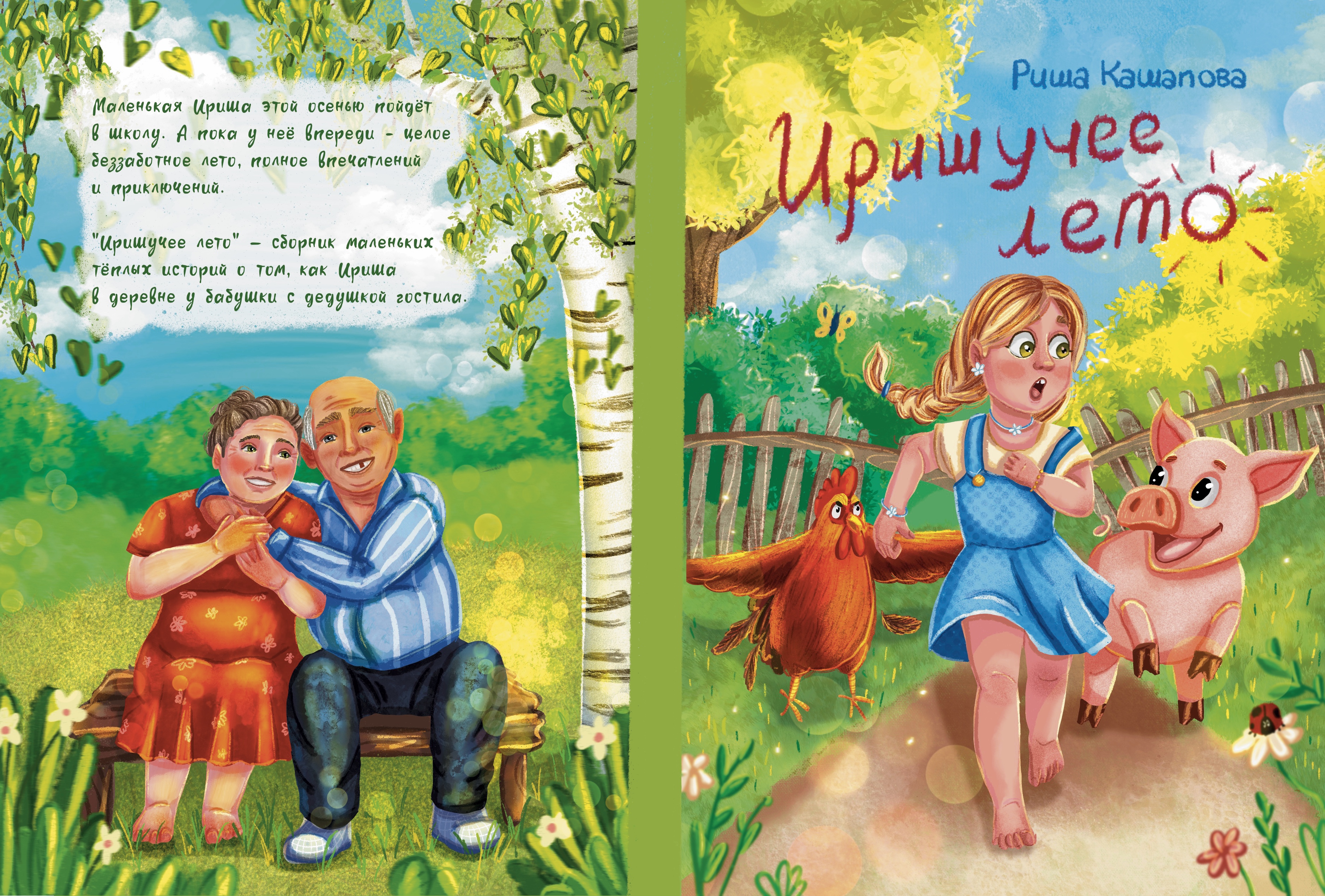 Иллюстрация для обложки книги "Иришучее лето", разворот