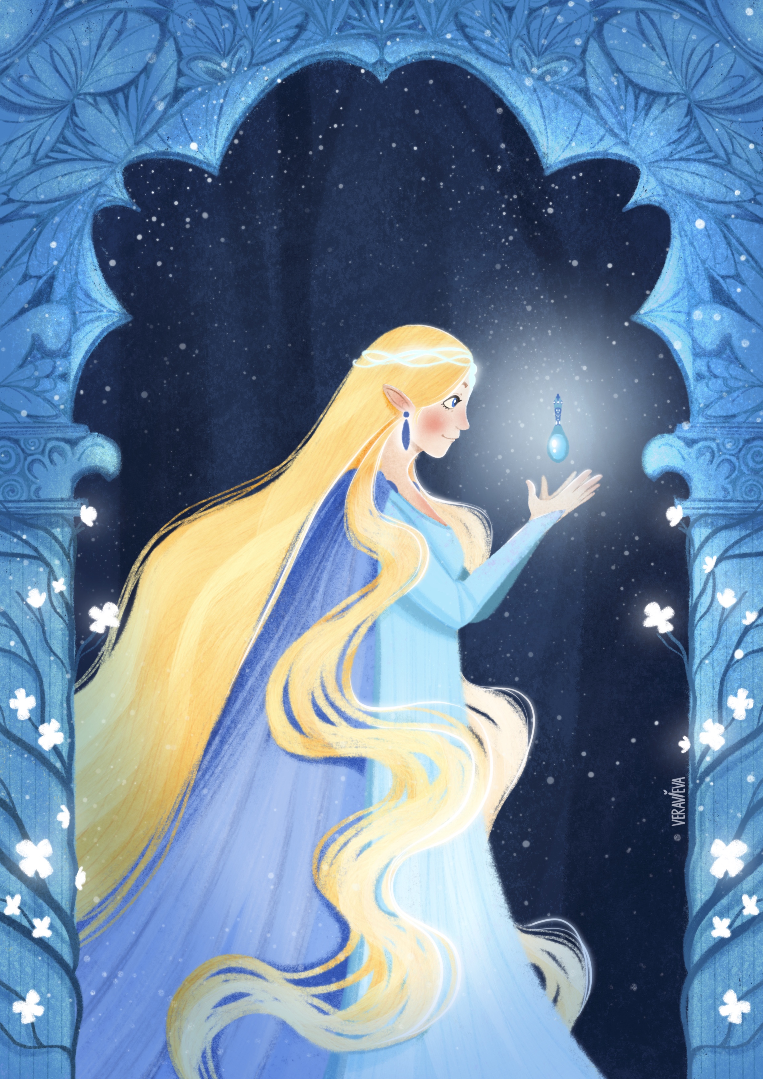 Эльфийская принцесса Галадриэль со Светом звезды Эарендила, который запечатлен во флаконе. Позже, она подарит его Фродо Бэггинсу, чтобы помочь в его опасном приключении.