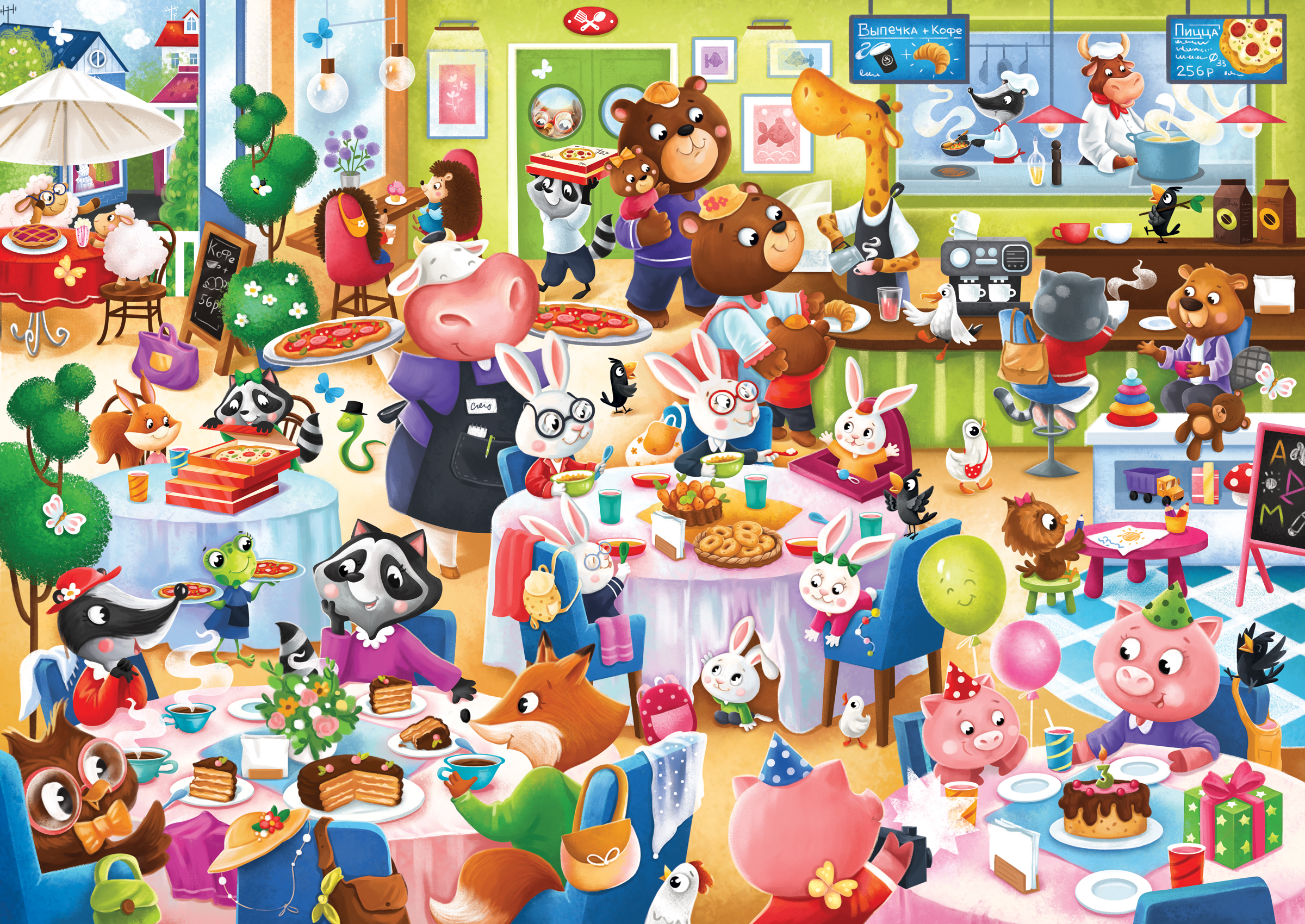 Увлекательный пазл Виммельбух Кафе 80 элементов. Игра на внимательность. El`BascoKids — настольные развивающие игры и пазлы.
