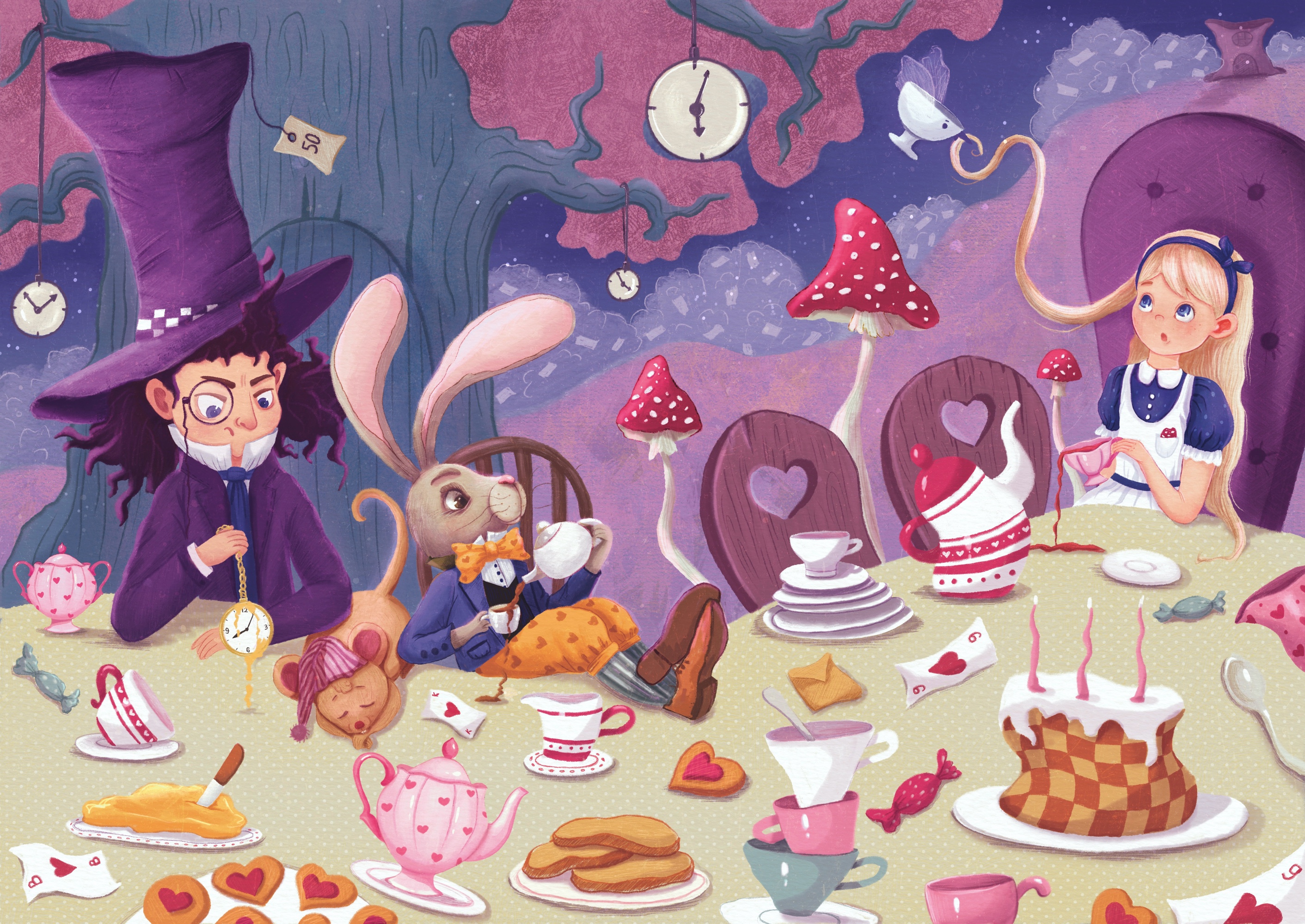 Иллюстрация к произведению «Алиса в стране Чудес», сцена из главы «Безумное чаепитие»