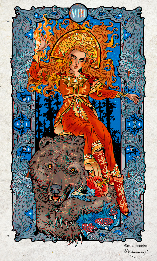 Карта Таро "СИЛА" в сказочном русском сеттинге.