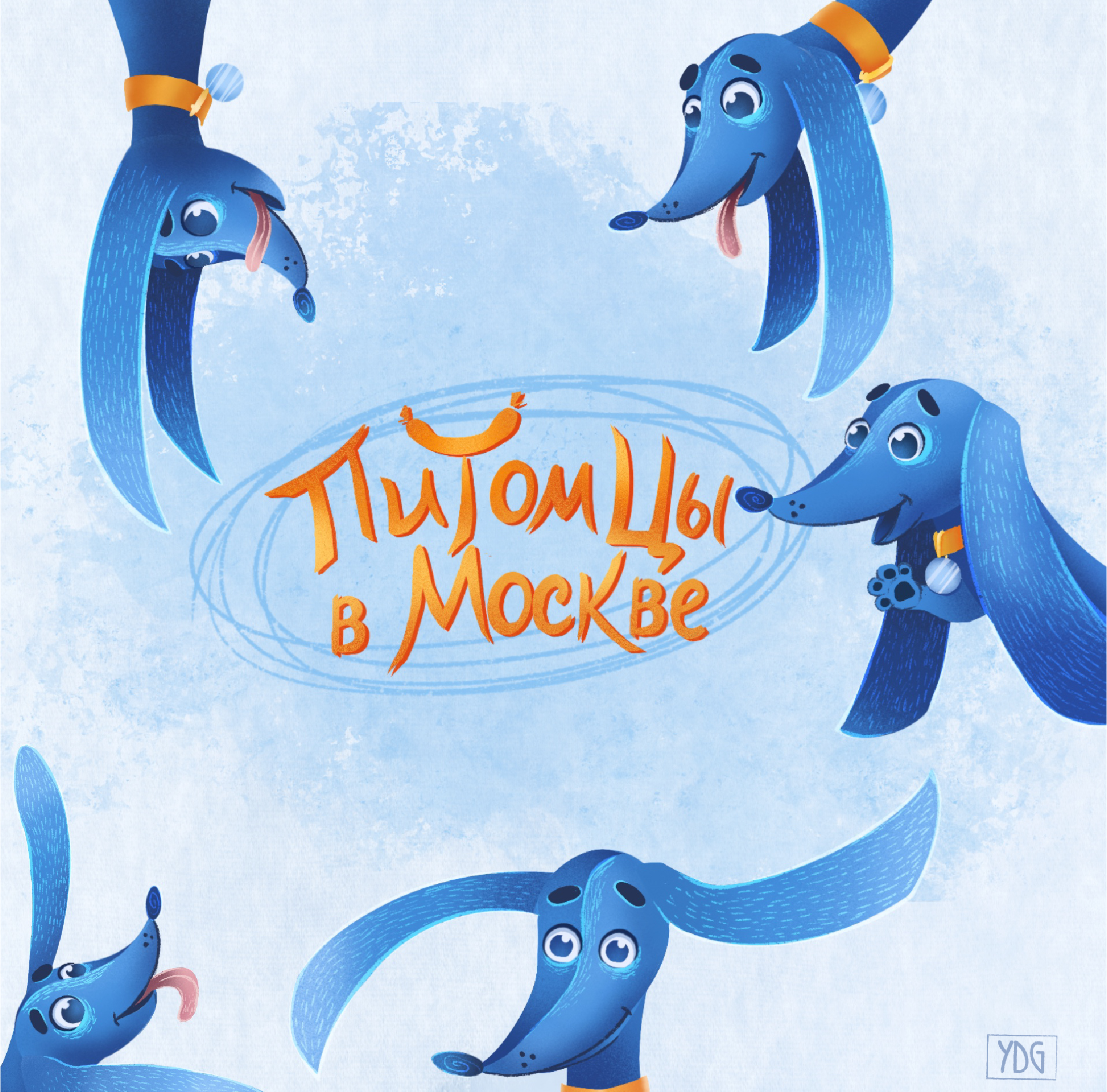Концепт бренд-персонажа, созданный в рамках конкурса "Питомцы в Москве". За основу образа был взят логотип проекта и основной цвет-синий. Так получилась синяя такса Хвостик с задорным и любопытным характером.